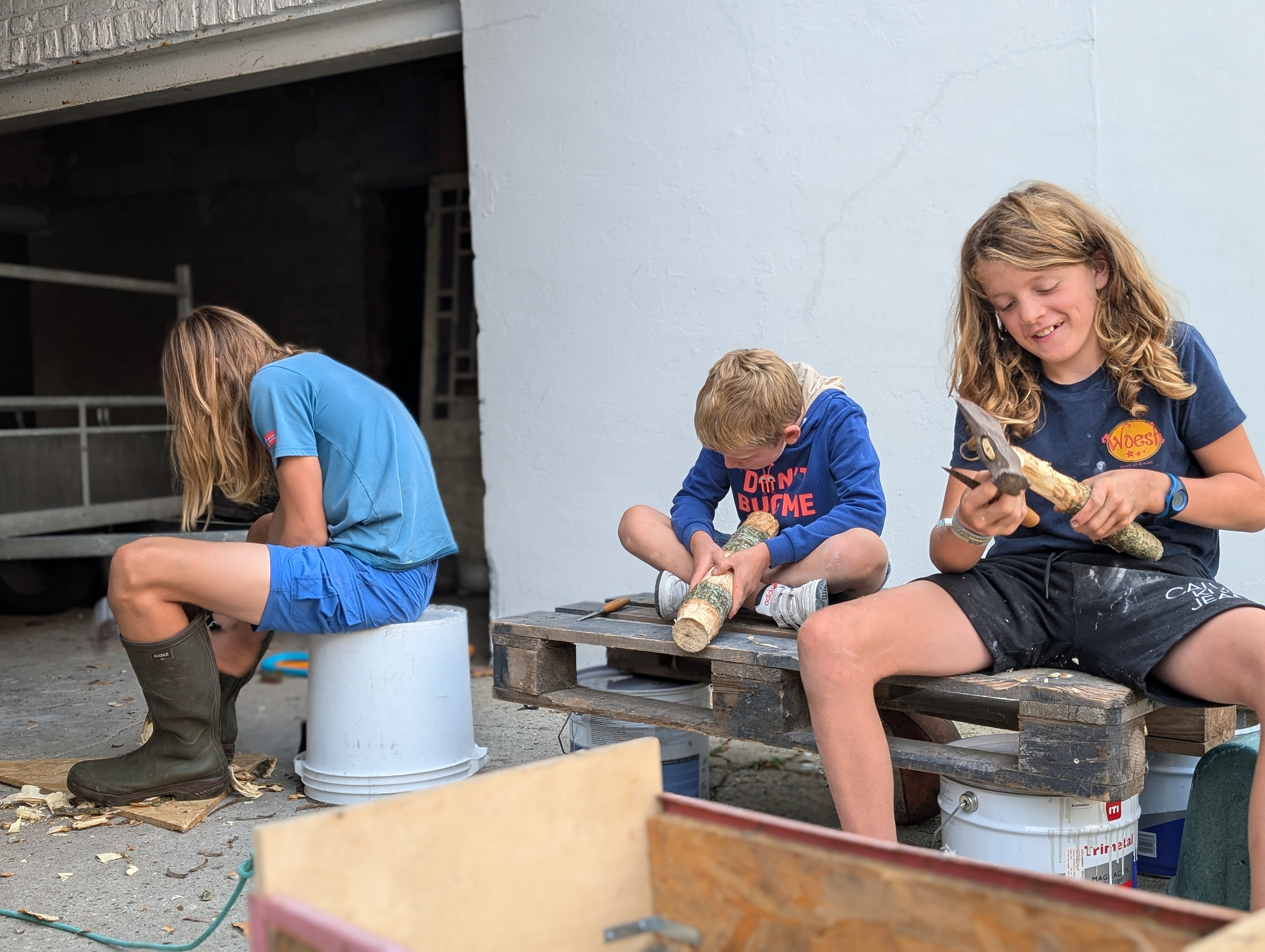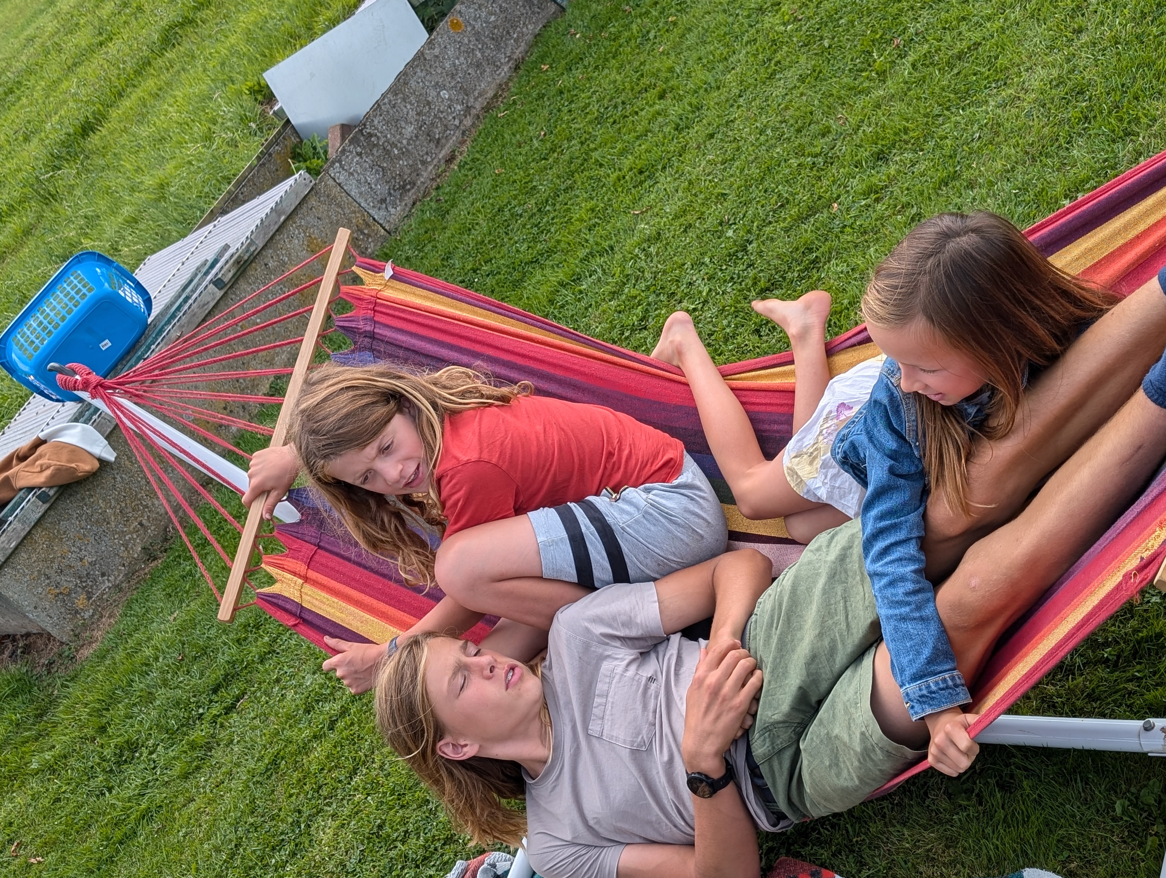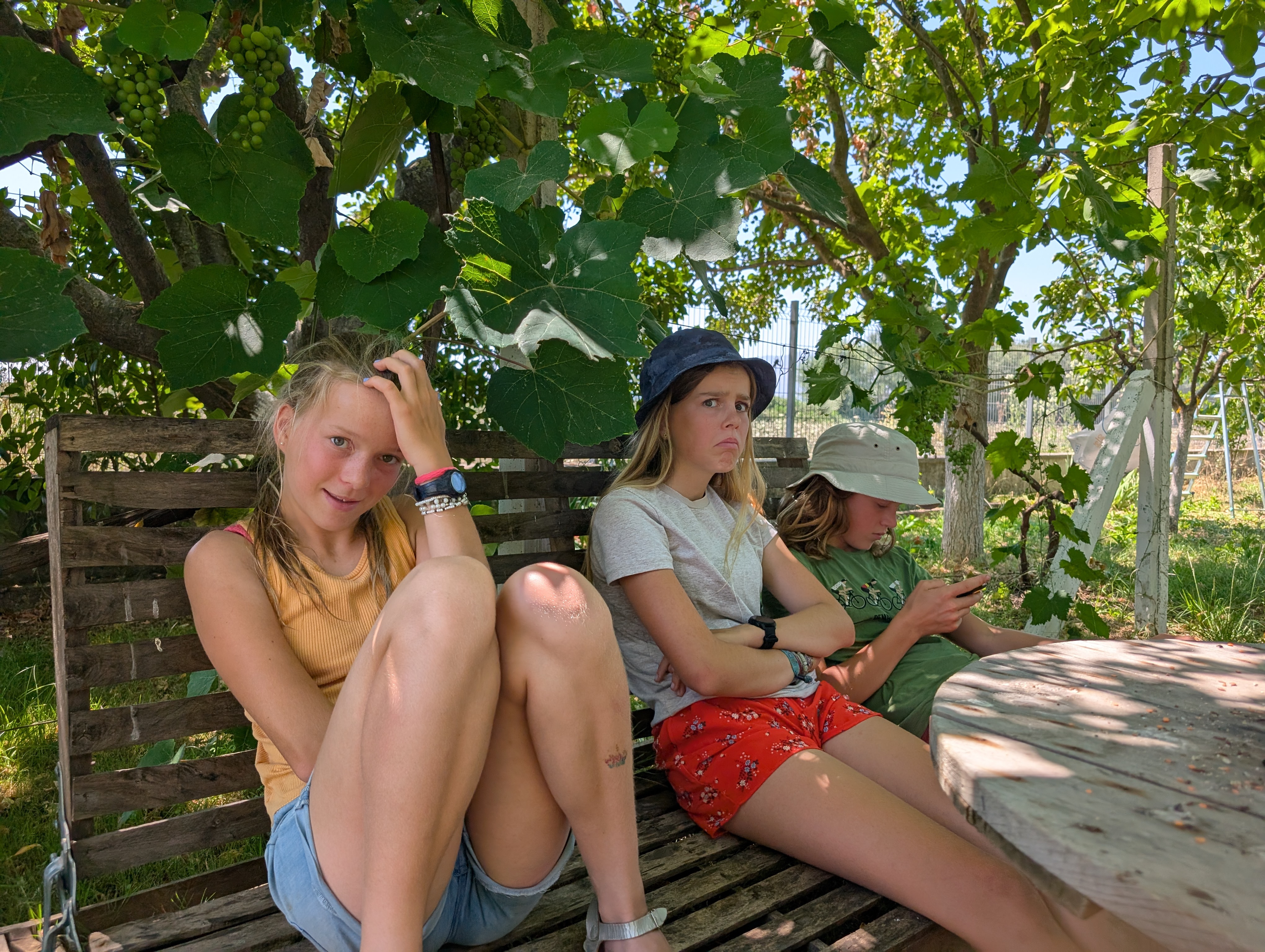 De kroost doet het goed en scharrelt goddank nog steeds heel erg graag dichtbij rond. Kampen van scouts en Kazou worden ten volle beleefd – op dit eigenste moment is er nog een vanuit Zweden onderweg naar huis – maar dagen thuis, daar houden ze eigenlijk ook wel van. Het is een va-et-vient van nichtjes en buurkinderen. Heerlijk om te zien hoe een 13- of een 15- jarige de 3-jarige buurjongen op sleeptouw neemt, hoe de kleine nichtjes met gemak over de schouders van de oudste neven worden gegooid en hoe ook heel wat andere kinderen zich bij ons helemaal thuis voelen.
