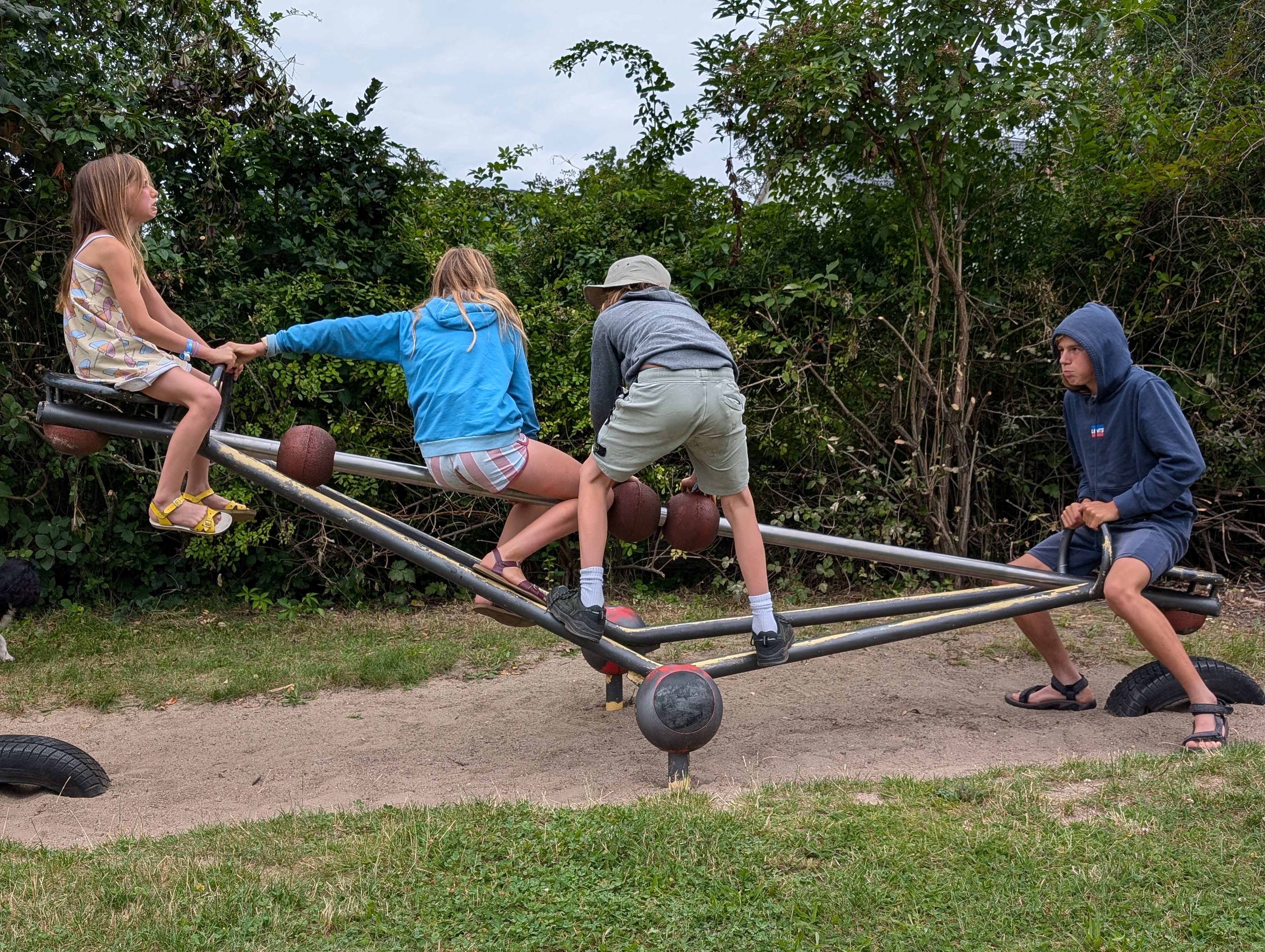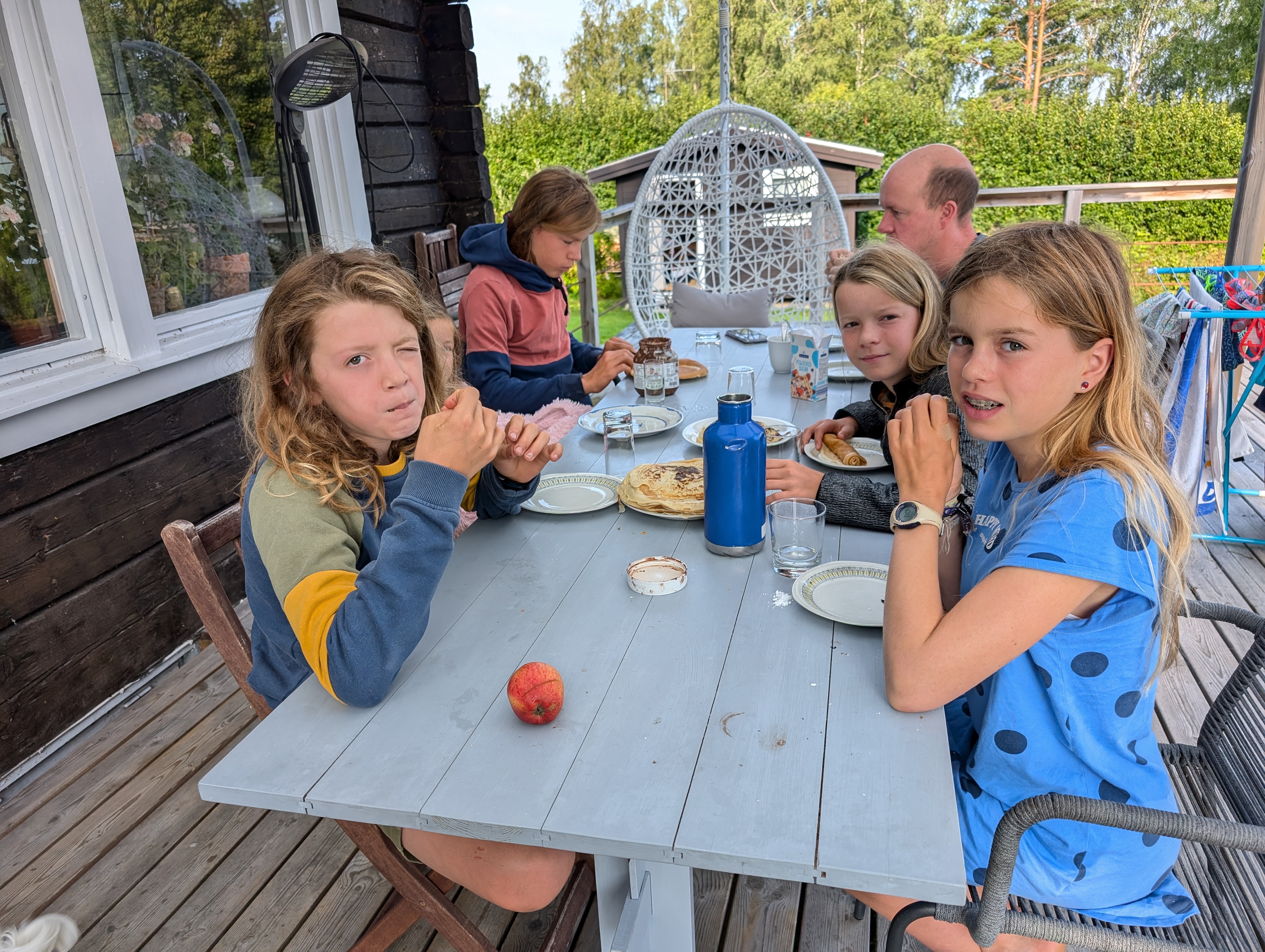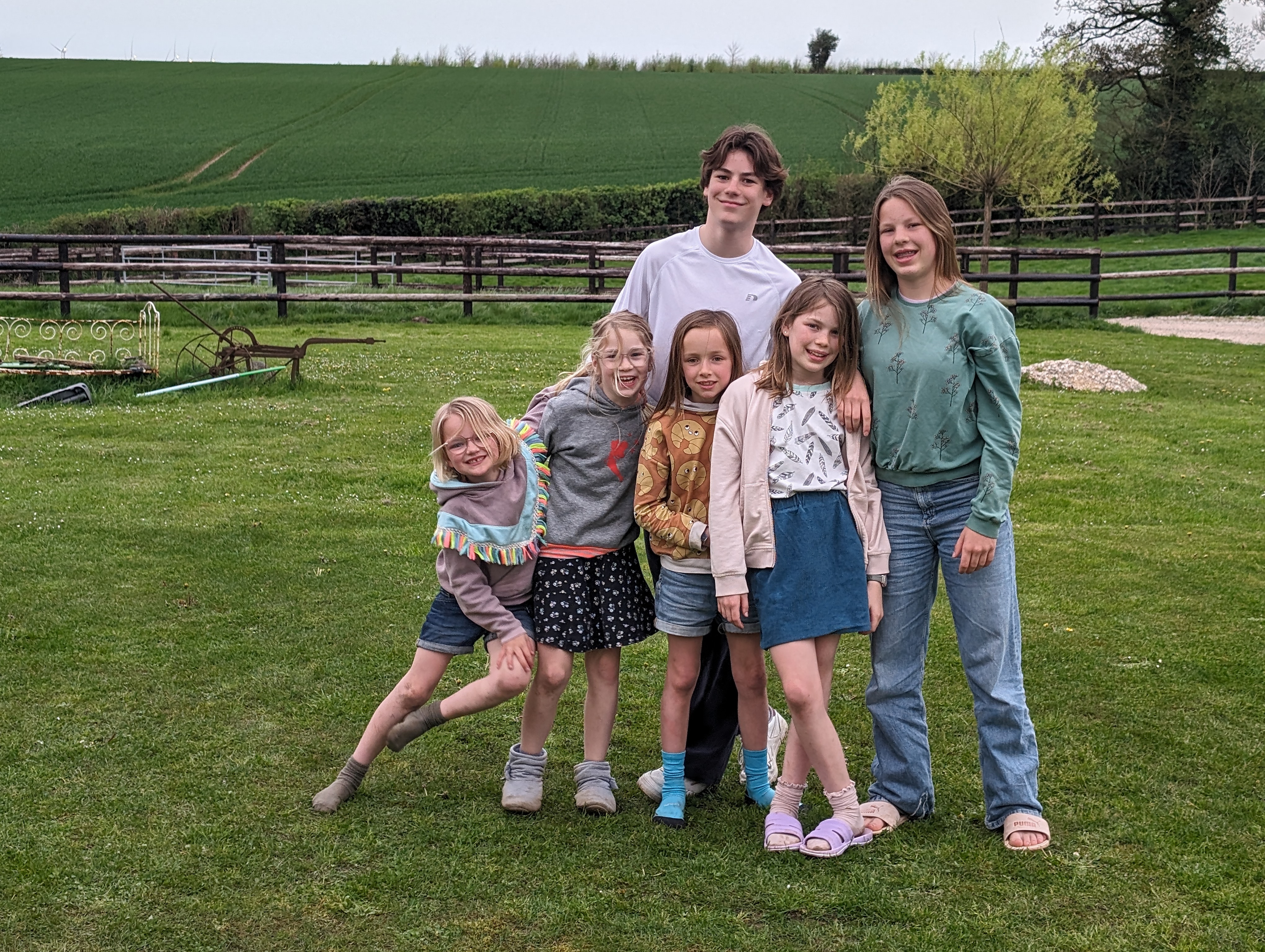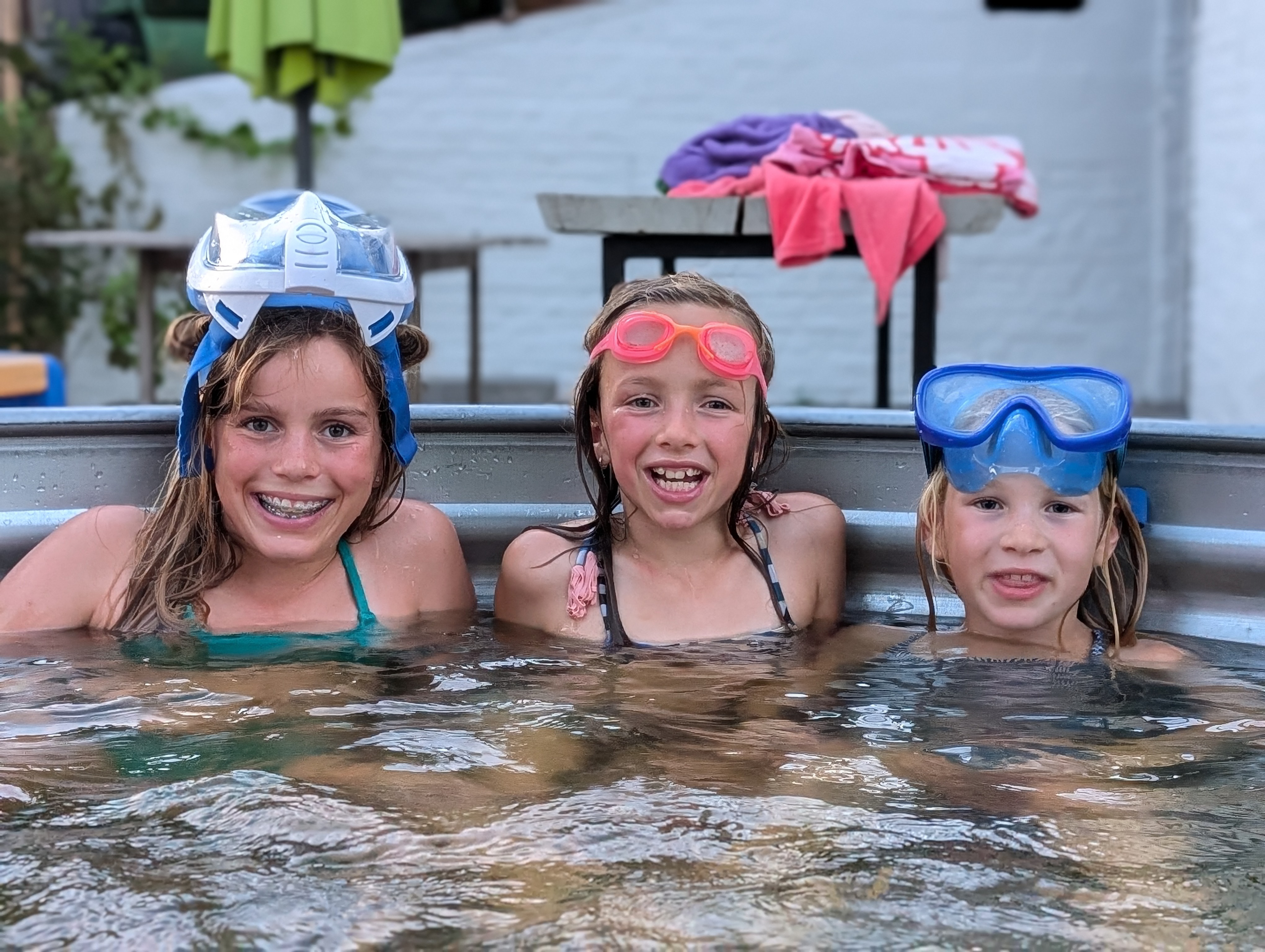 De kroost doet het goed en scharrelt goddank nog steeds heel erg graag dichtbij rond. Kampen van scouts en Kazou worden ten volle beleefd – op dit eigenste moment is er nog een vanuit Zweden onderweg naar huis – maar dagen thuis, daar houden ze eigenlijk ook wel van. Het is een va-et-vient van nichtjes en buurkinderen. Heerlijk om te zien hoe een 13- of een 15- jarige de 3-jarige buurjongen op sleeptouw neemt, hoe de kleine nichtjes met gemak over de schouders van de oudste neven worden gegooid en hoe ook heel wat andere kinderen zich bij ons helemaal thuis voelen.