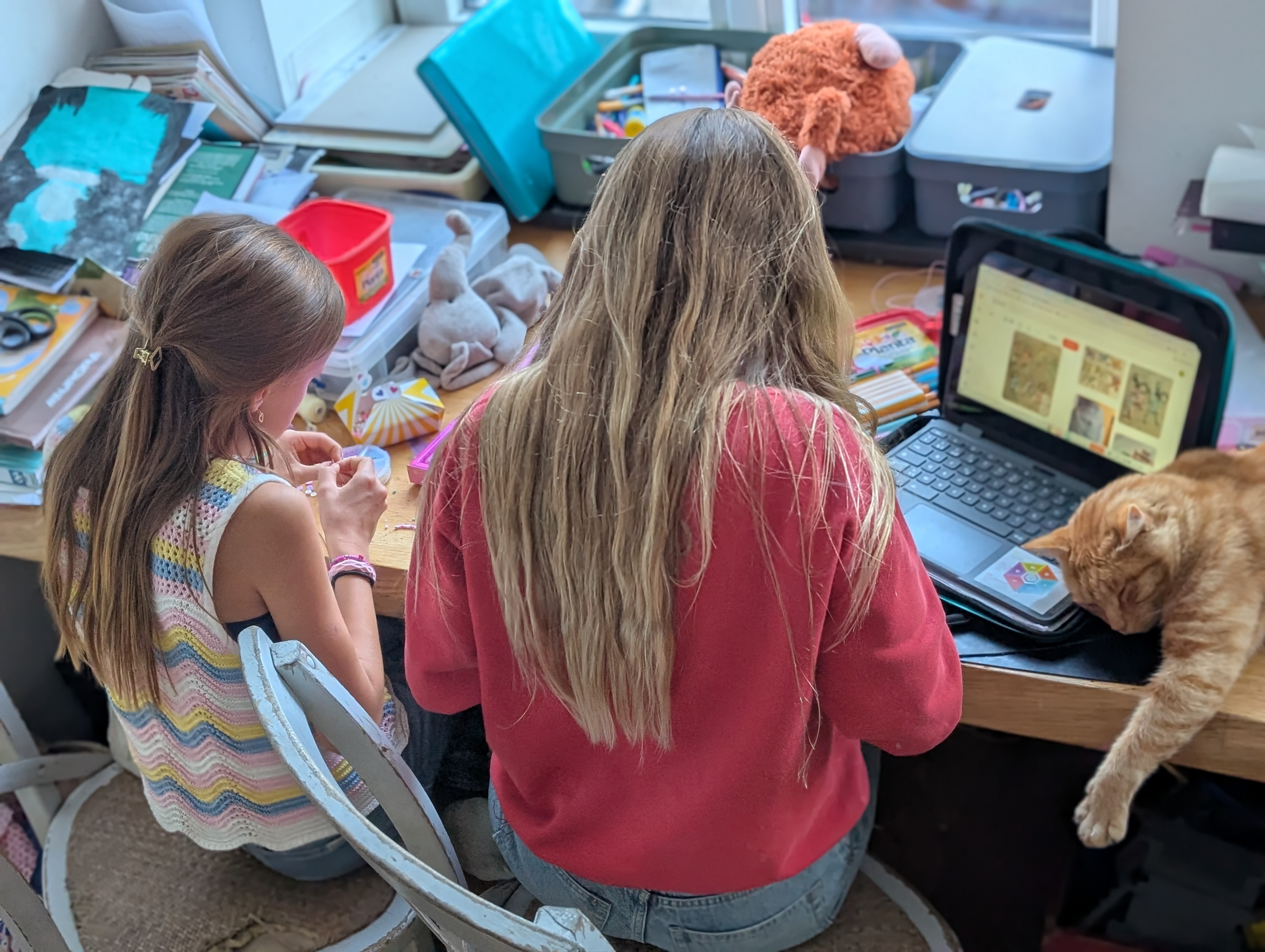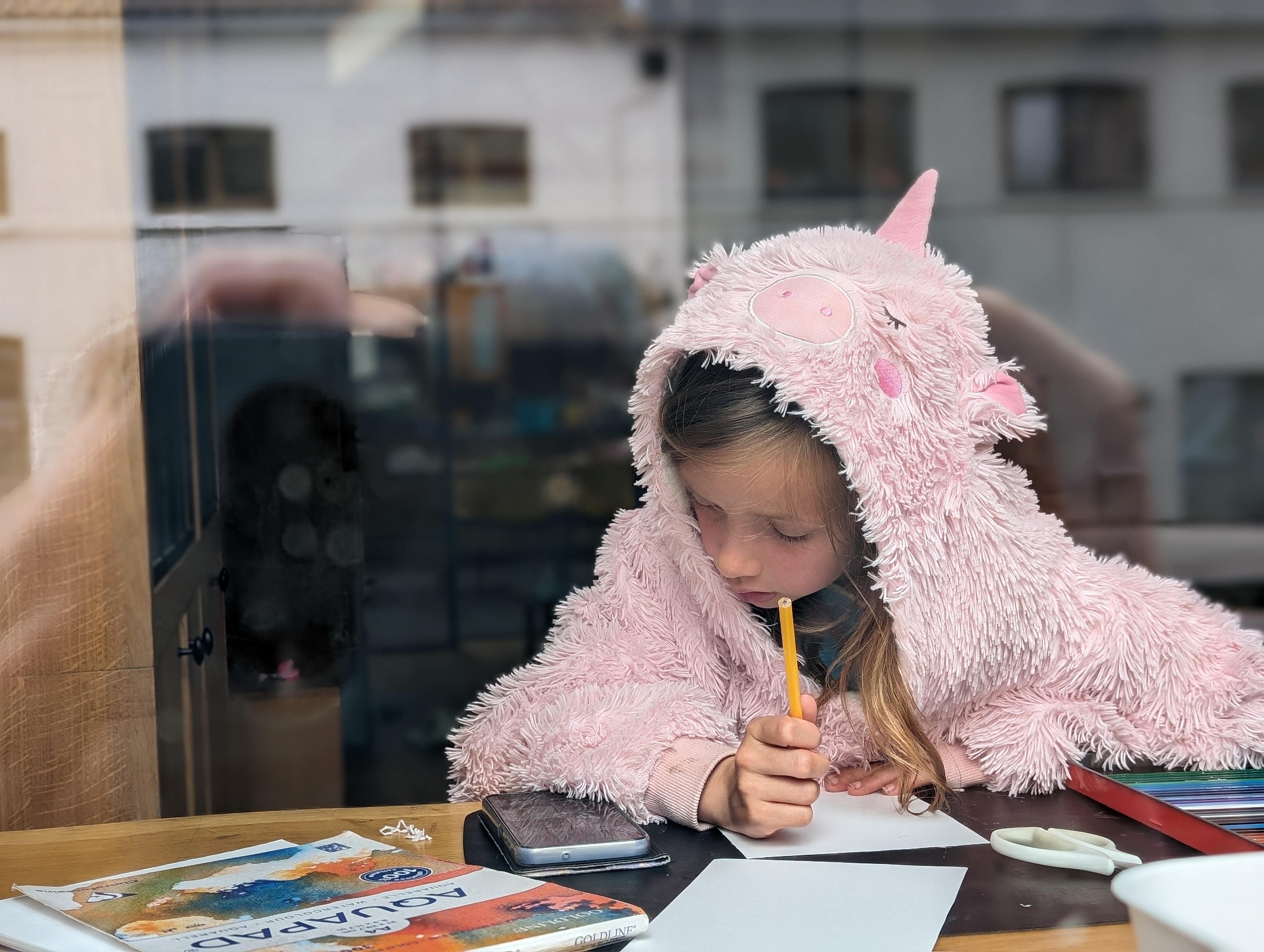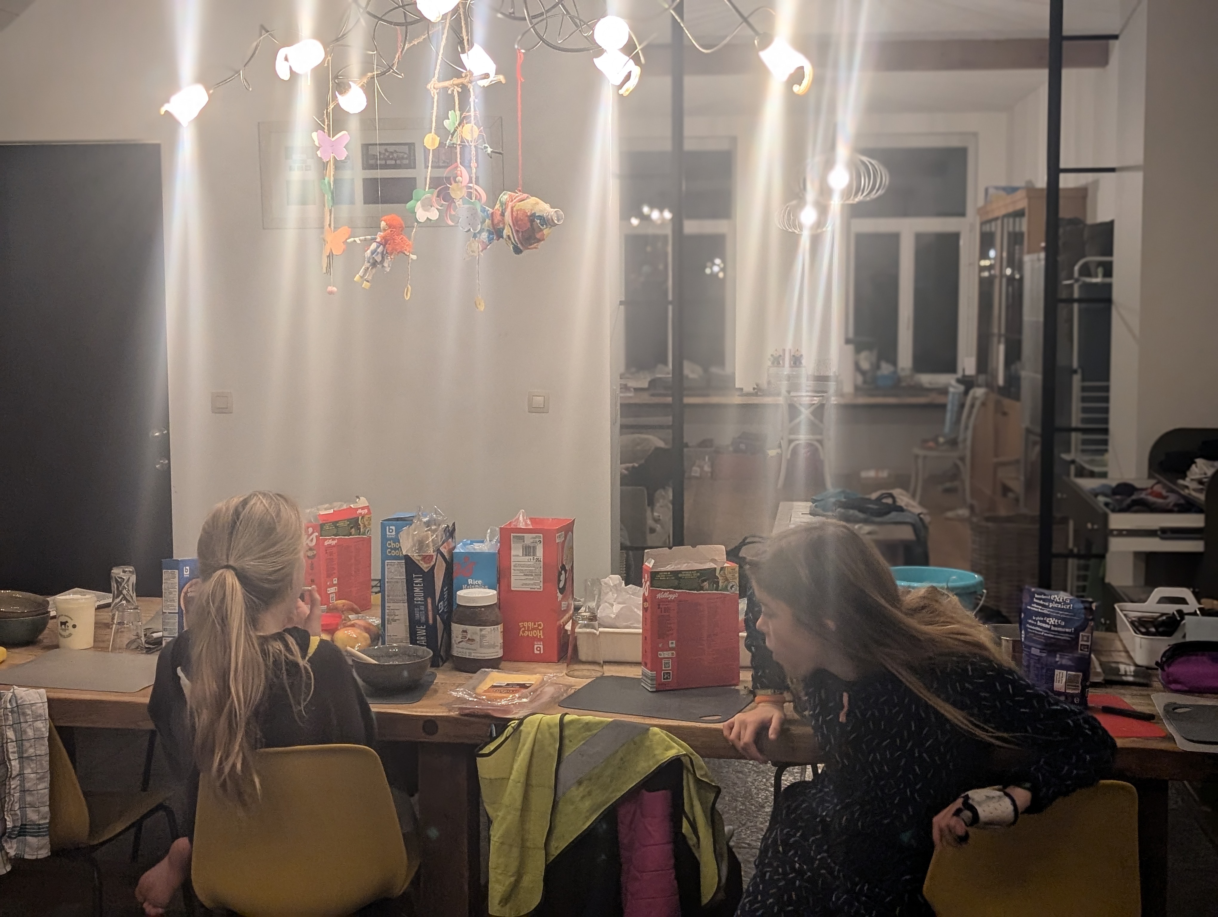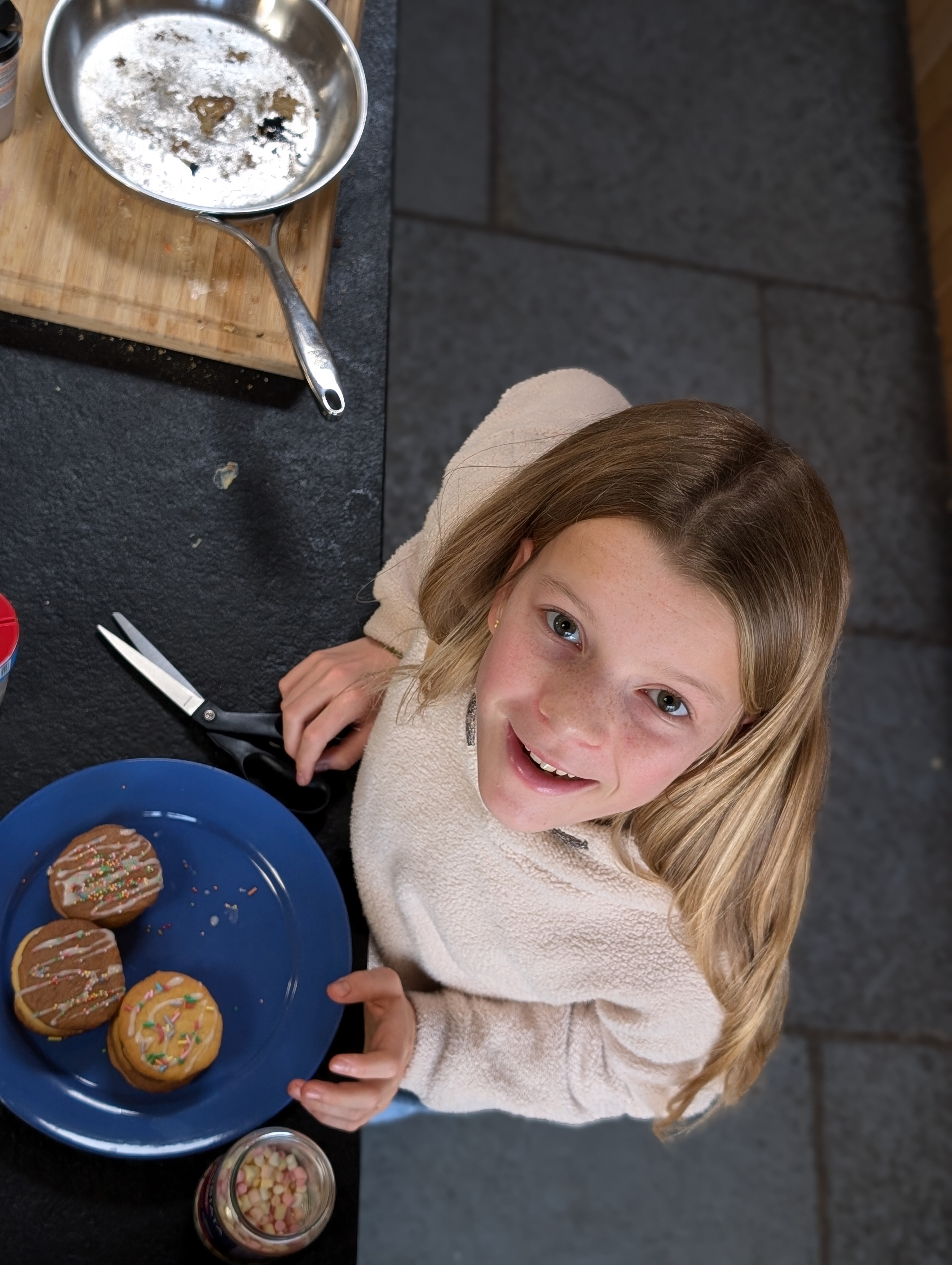 Ik heb dan wel 5 tieners in huis, maar zit met hen en hun lijf en hun gemoed nog ten volle in de gezellige schemerzone tussen klein en groot. Wat ik bedoel: Een zetel vol dekens, kinders, een hond en een kat, een keukentafel waaraan geschilderd wordt, waar taarten versierd worden en tekeningen worden gemaakt en goddank nog weinig vragen om uit te gaan of pubergesnauw.