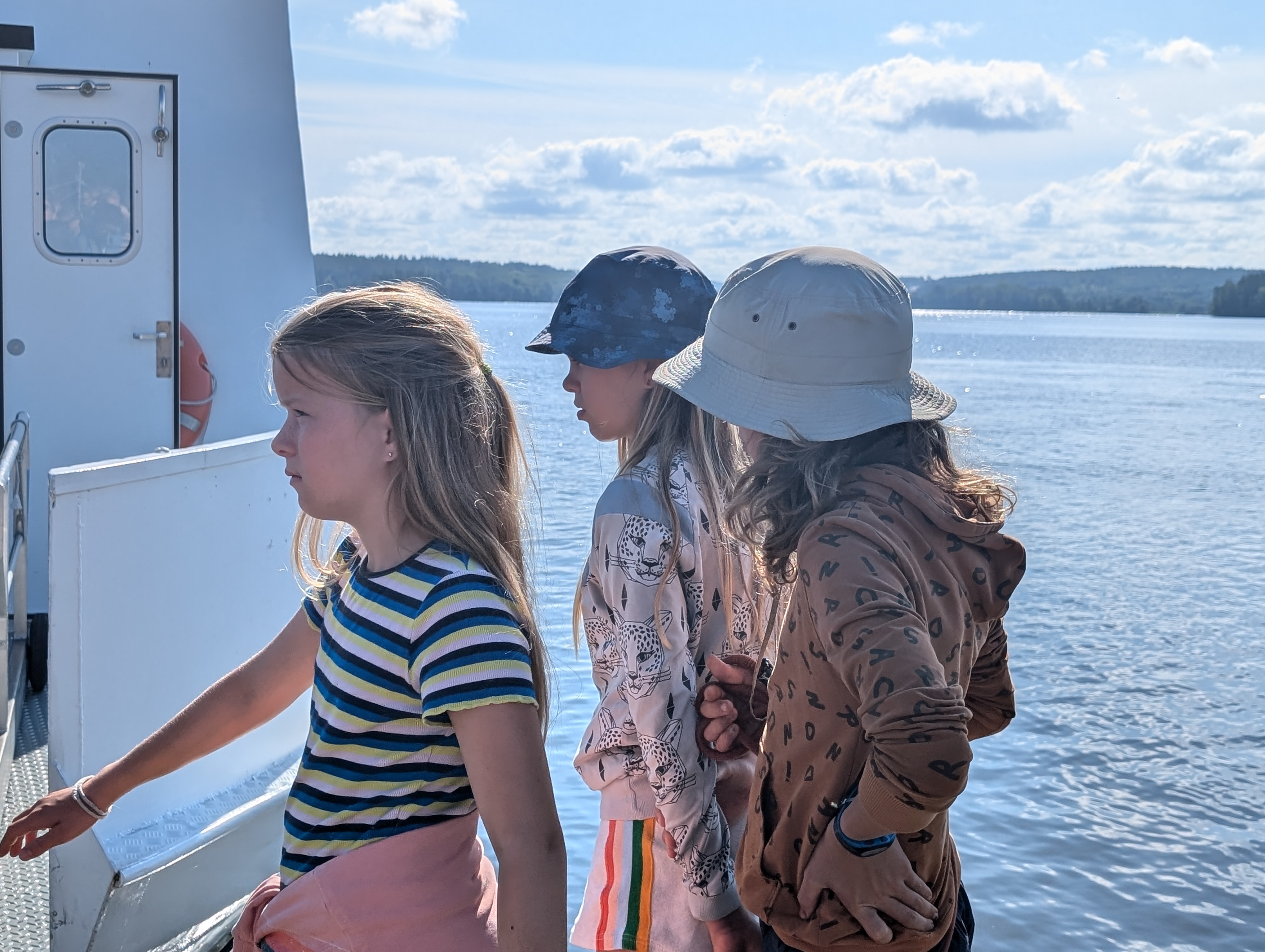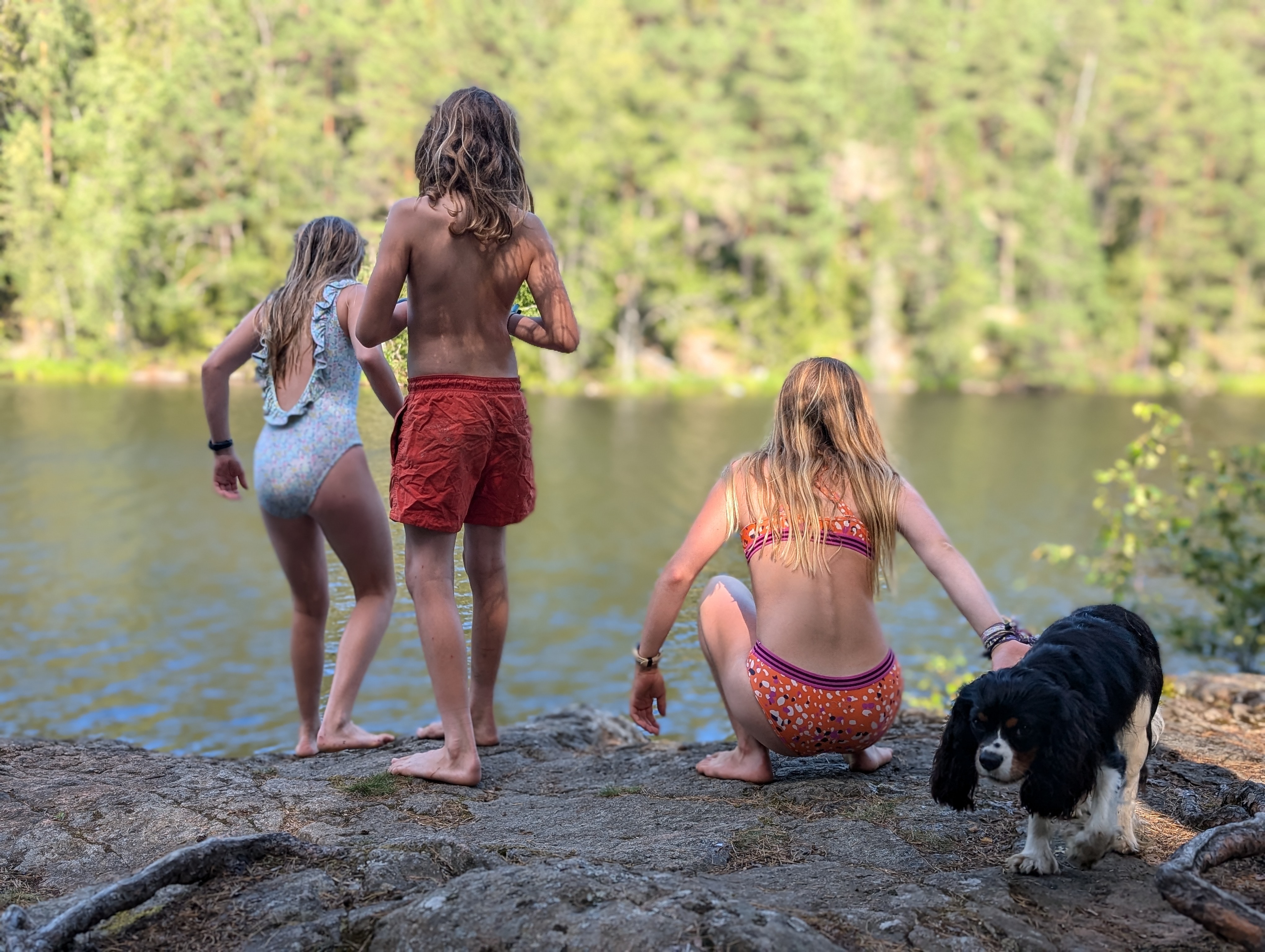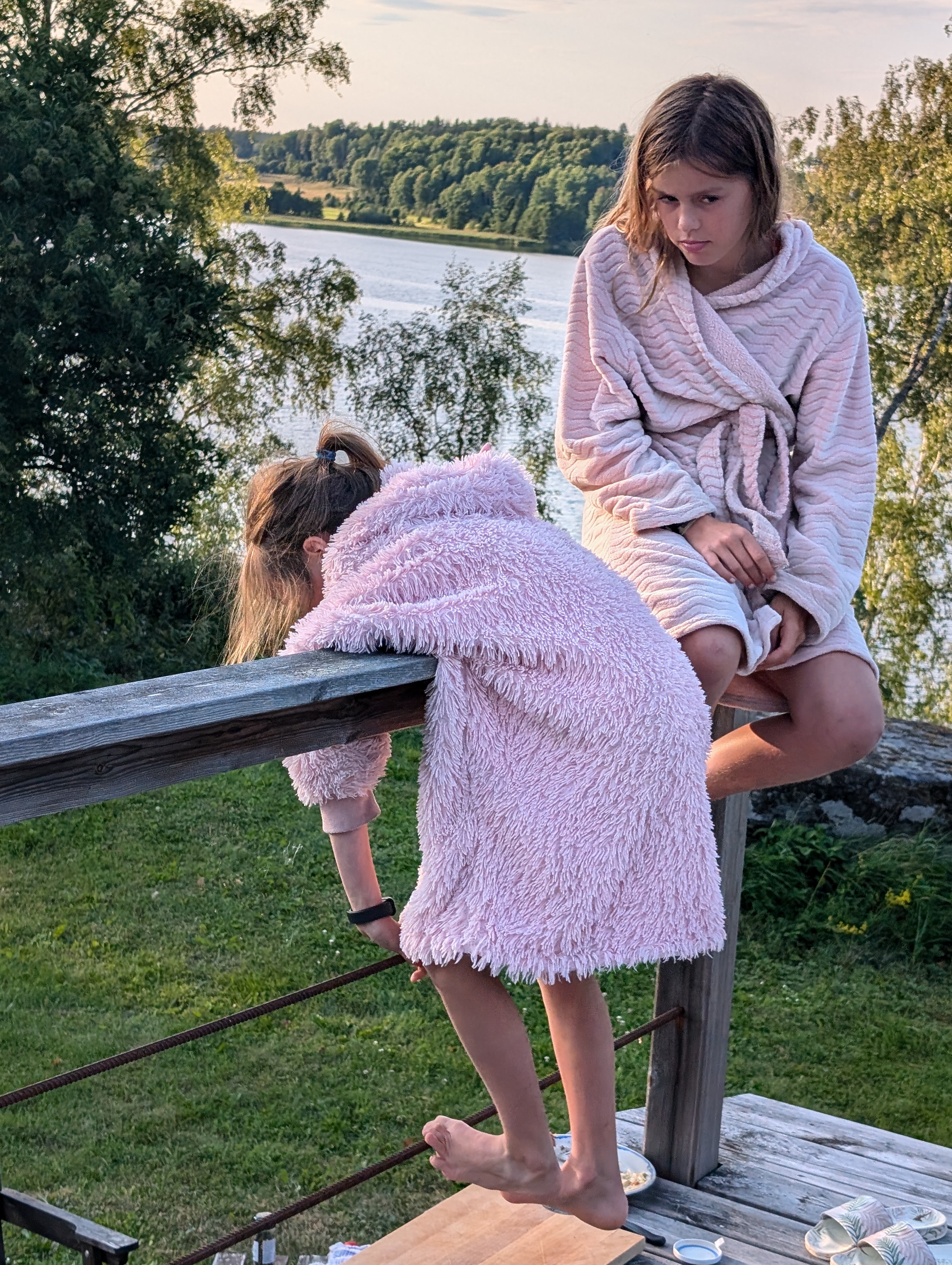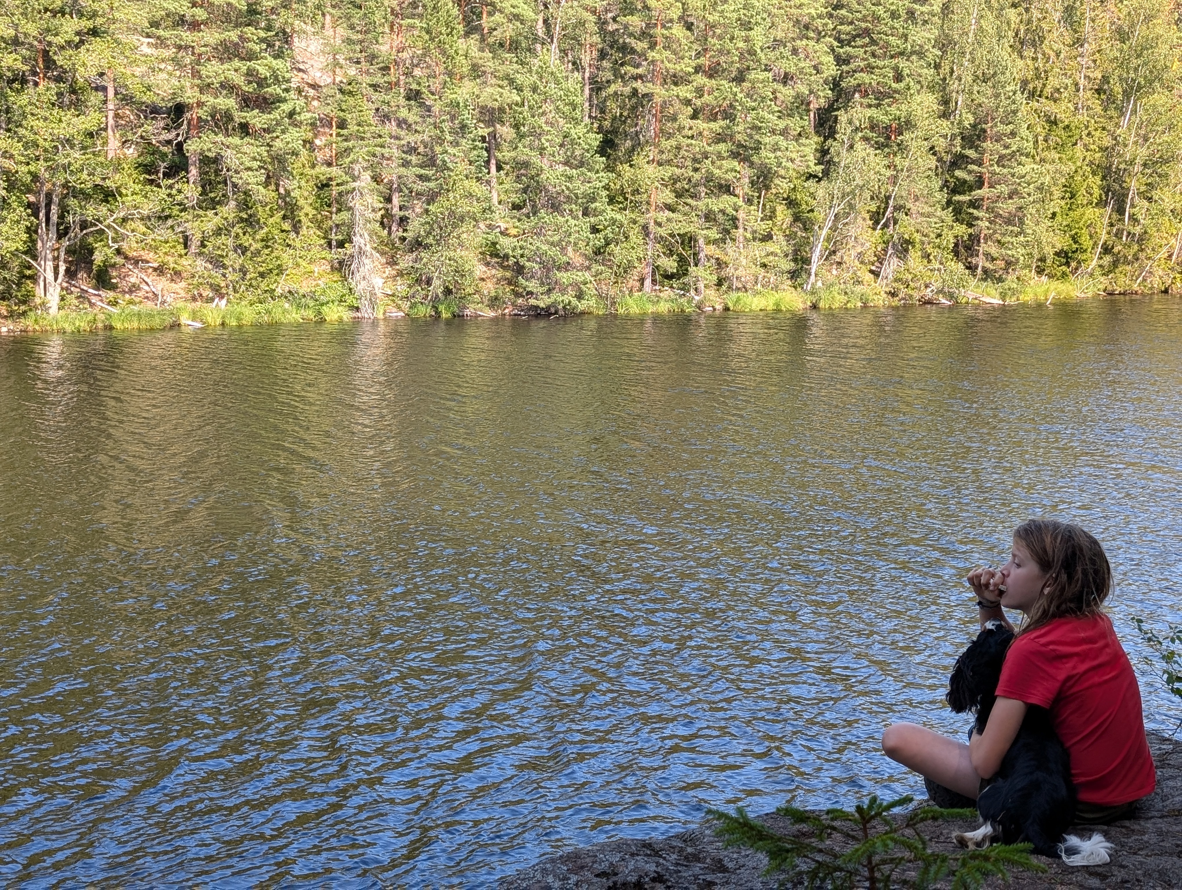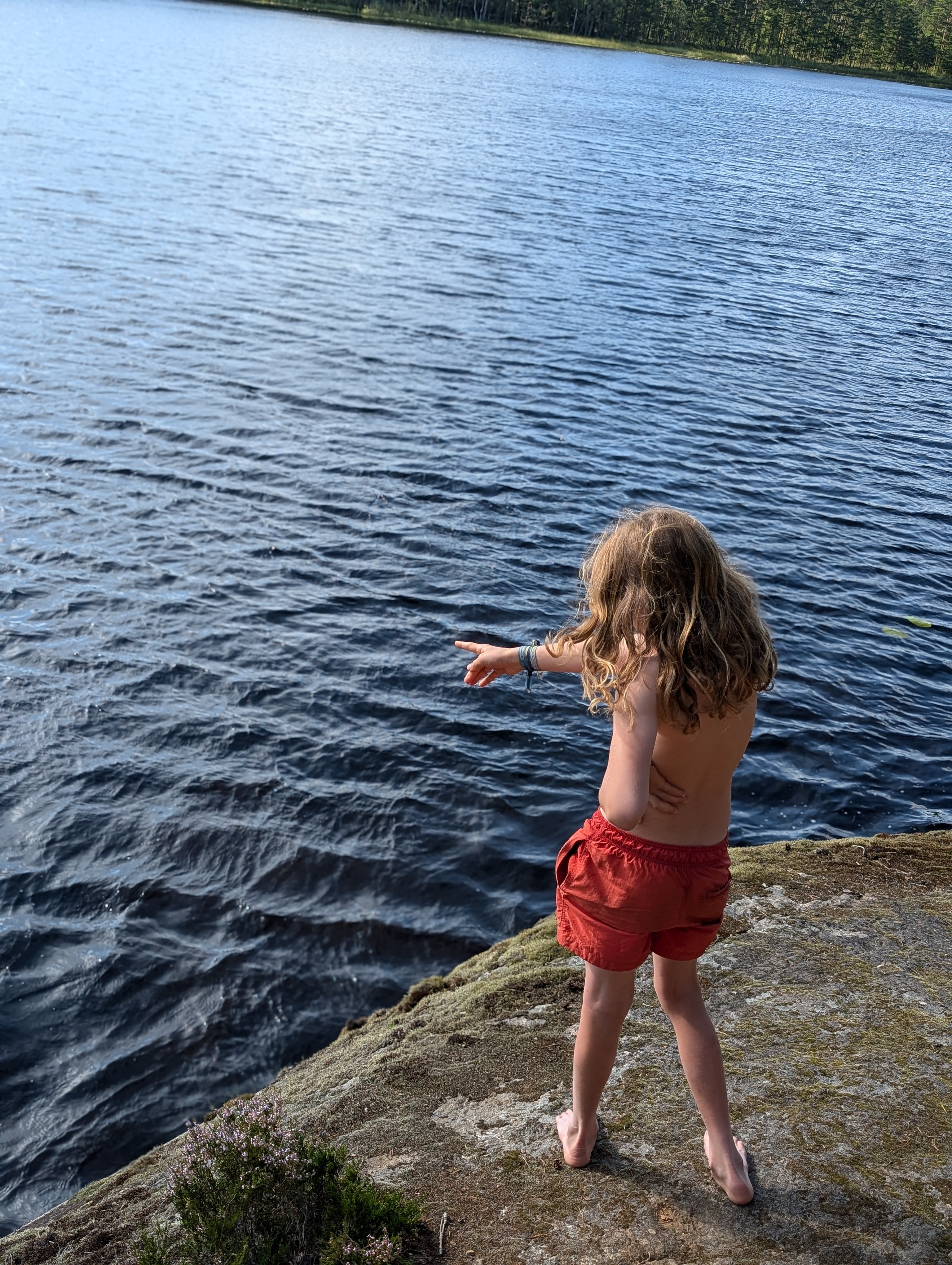 We hebben een prachtig houten terras, een magnifiek zicht op het meer en opnieuw een eigen aanlegsteiger en bootje. Het zwemmen laat ik aan de kinderen over wegens veel te koud zonder wetsuit voor een koukleum als ik.