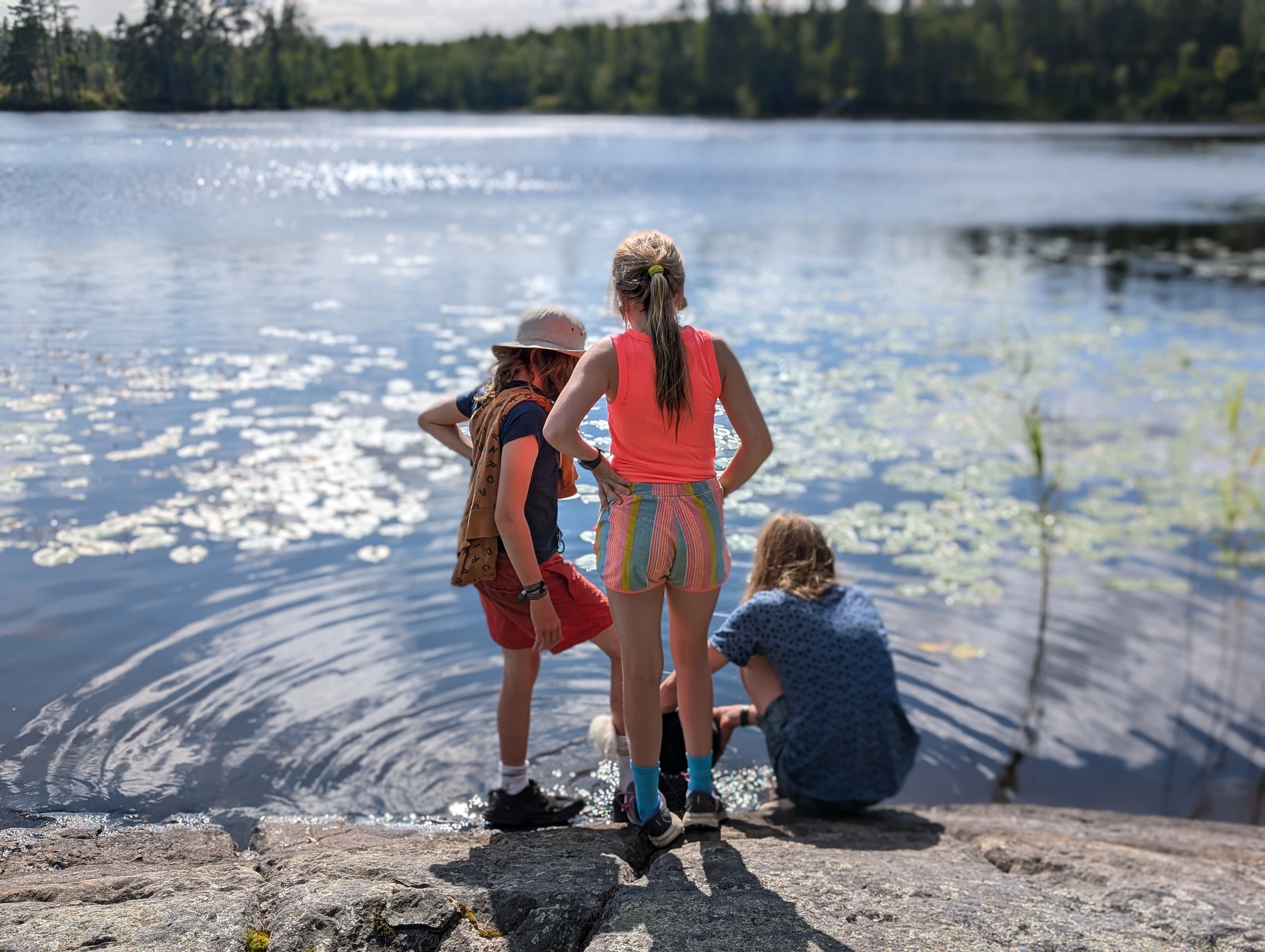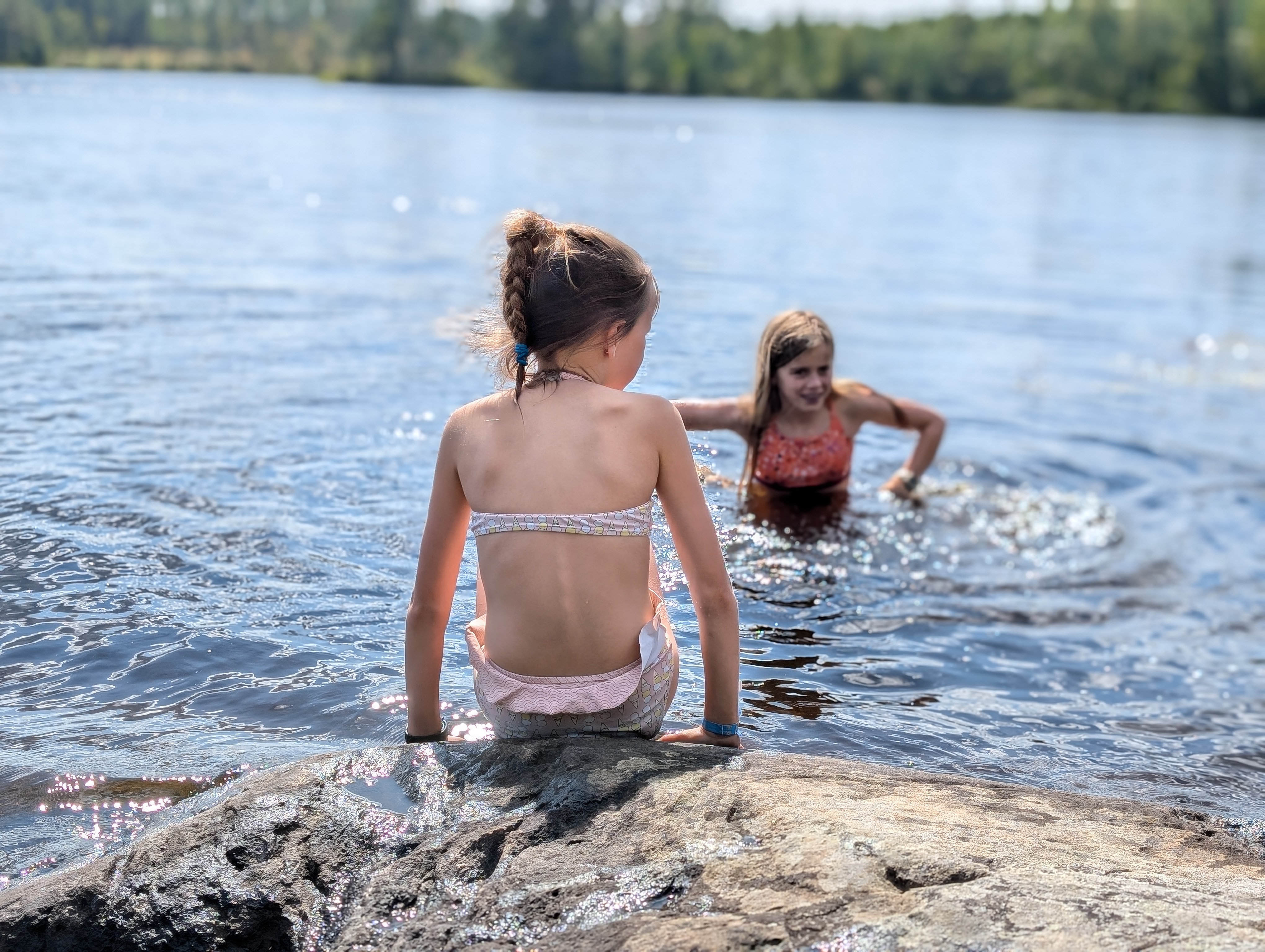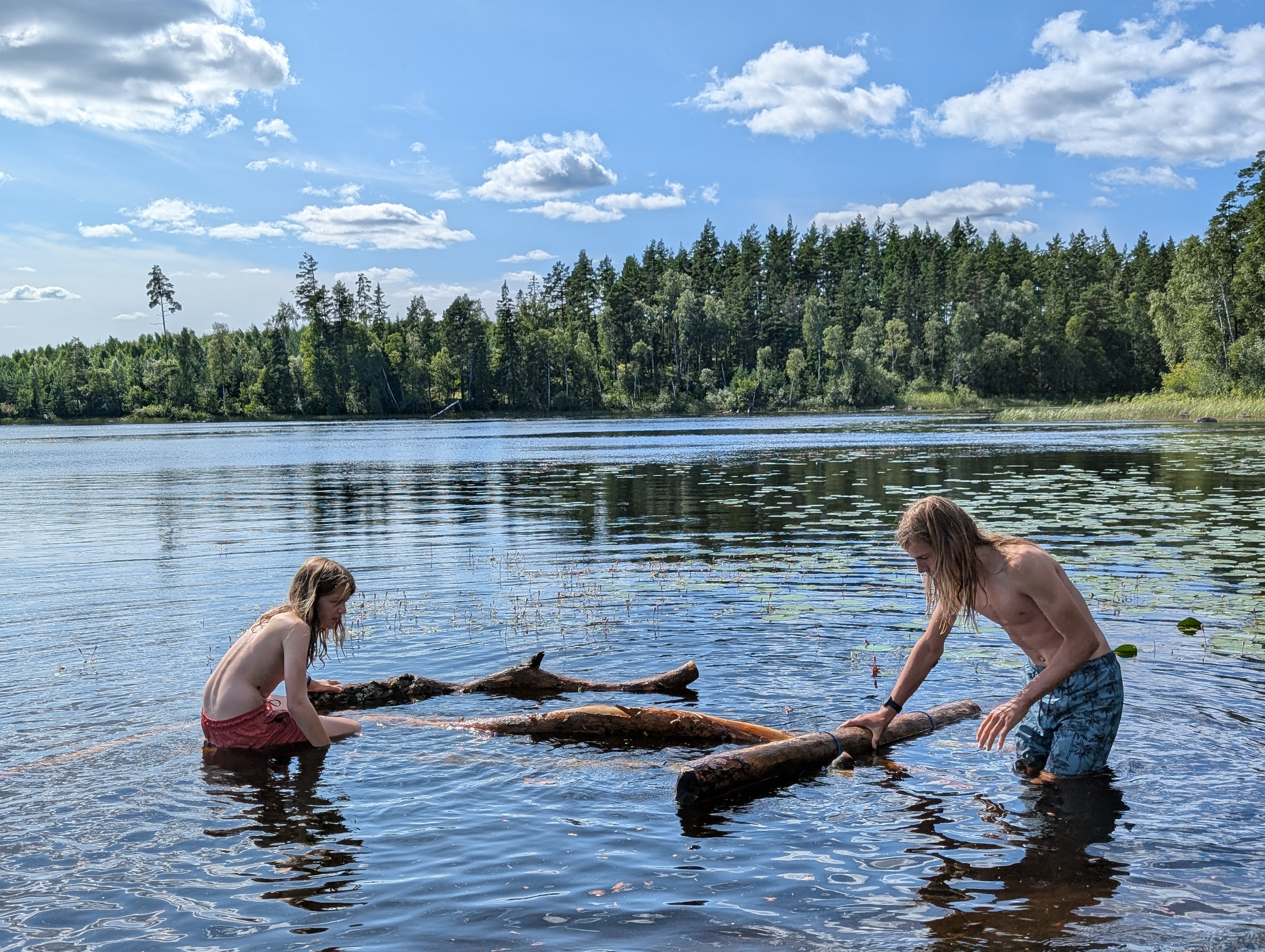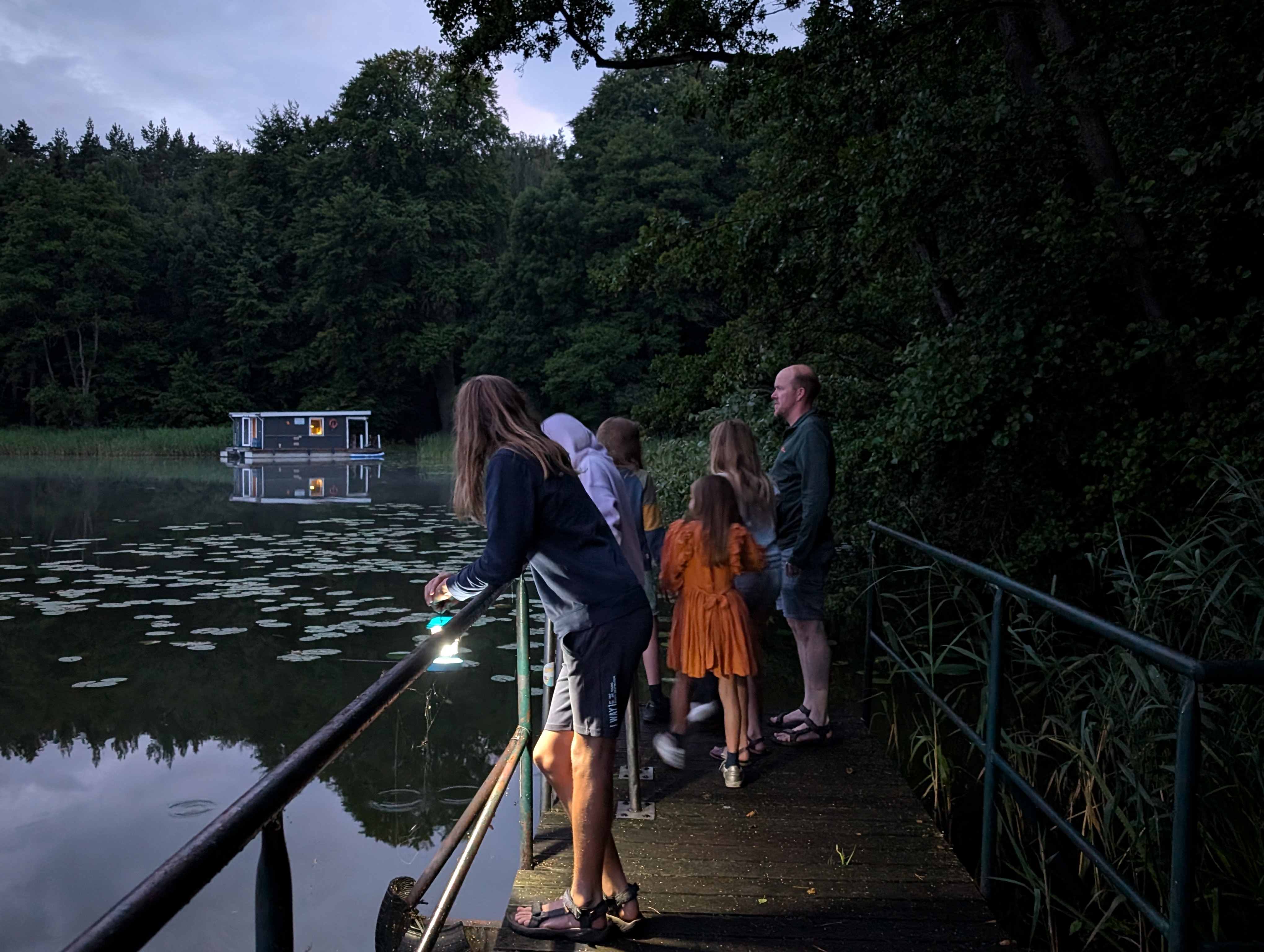 We hebben een prachtig houten terras, een magnifiek zicht op het meer en opnieuw een eigen aanlegsteiger en bootje. Het zwemmen laat ik aan de kinderen over wegens veel te koud zonder wetsuit voor een koukleum als ik.