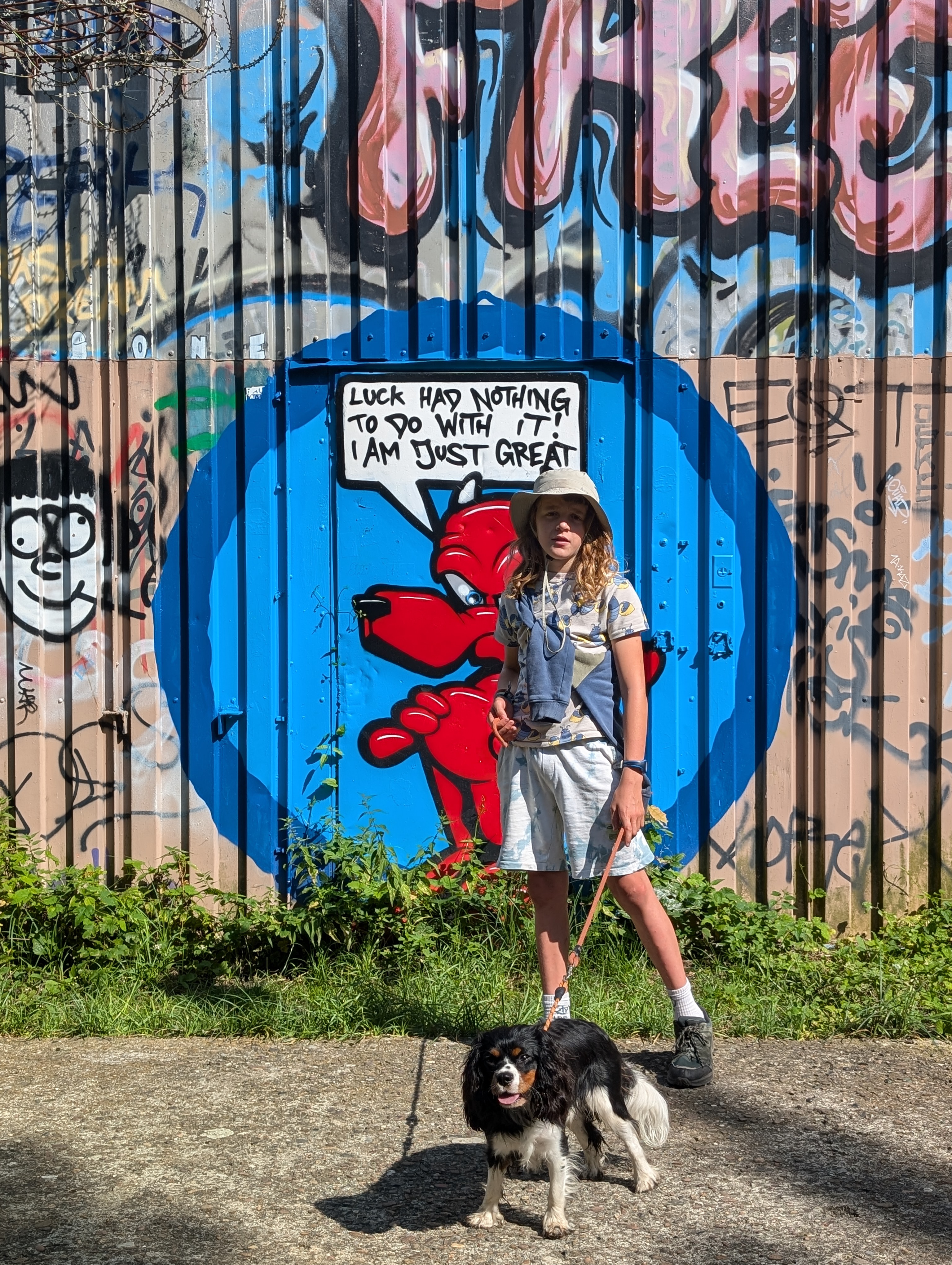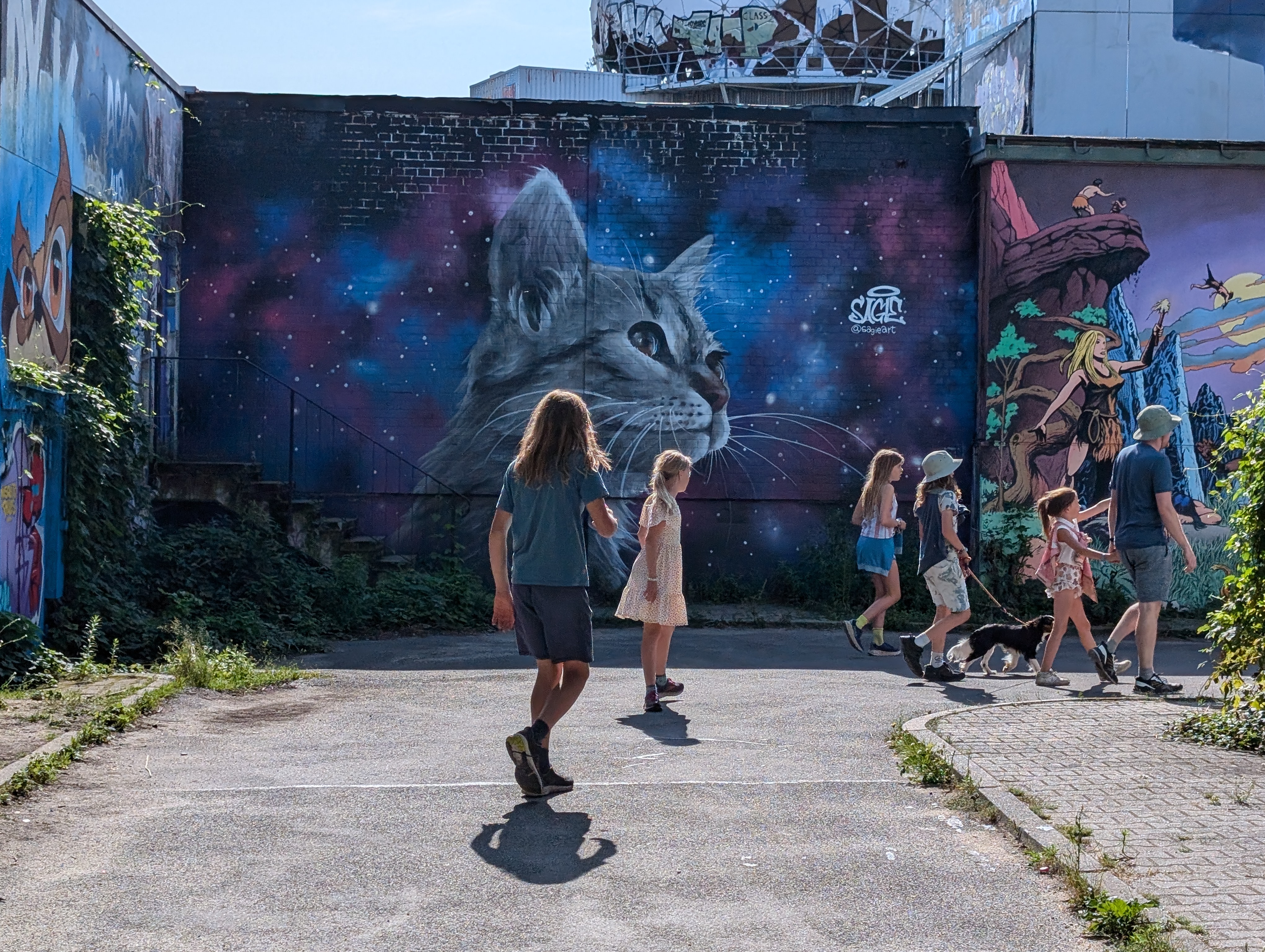 We genoten van enkele dagen grillen, wandelen, varen, vissen, lezen en fietsen en vierden de 13e verjaardag van grote zus met een rijtje kaarsen op een lekkere barbecueworst. Ik kreeg het kroostje uiteindelijk zelfs zo ver dat ze na een voormiddag klimparcours tot een rondje Teufelsberg te verleiden waren – een kunstmatige heuvel van waaruit je Berlijn kunt zien – ik bespaar je de historische uitleg en geef enkel nog mee dat er prachtige graffiti te zien is en dat er heel lekkere koffie is.