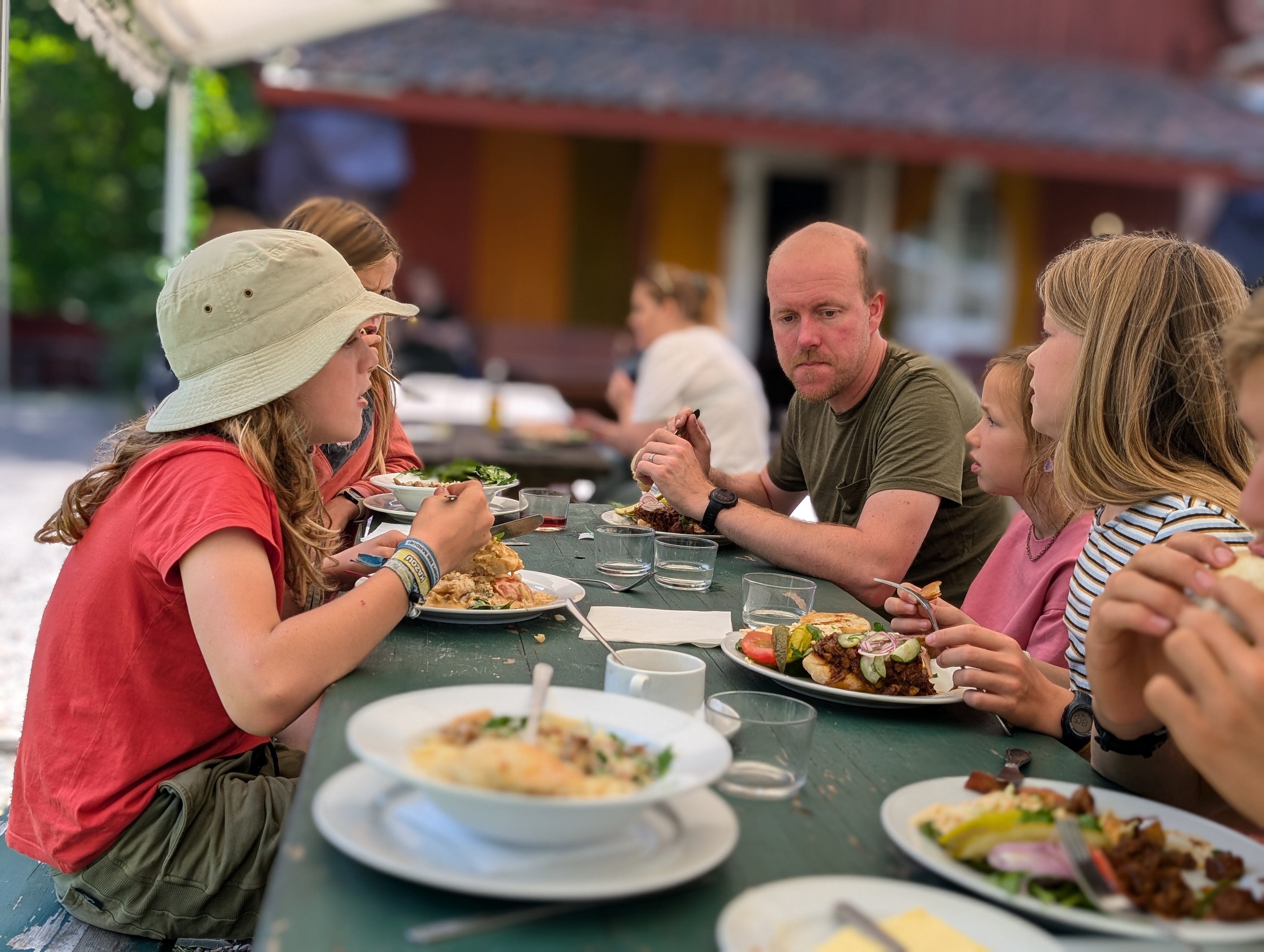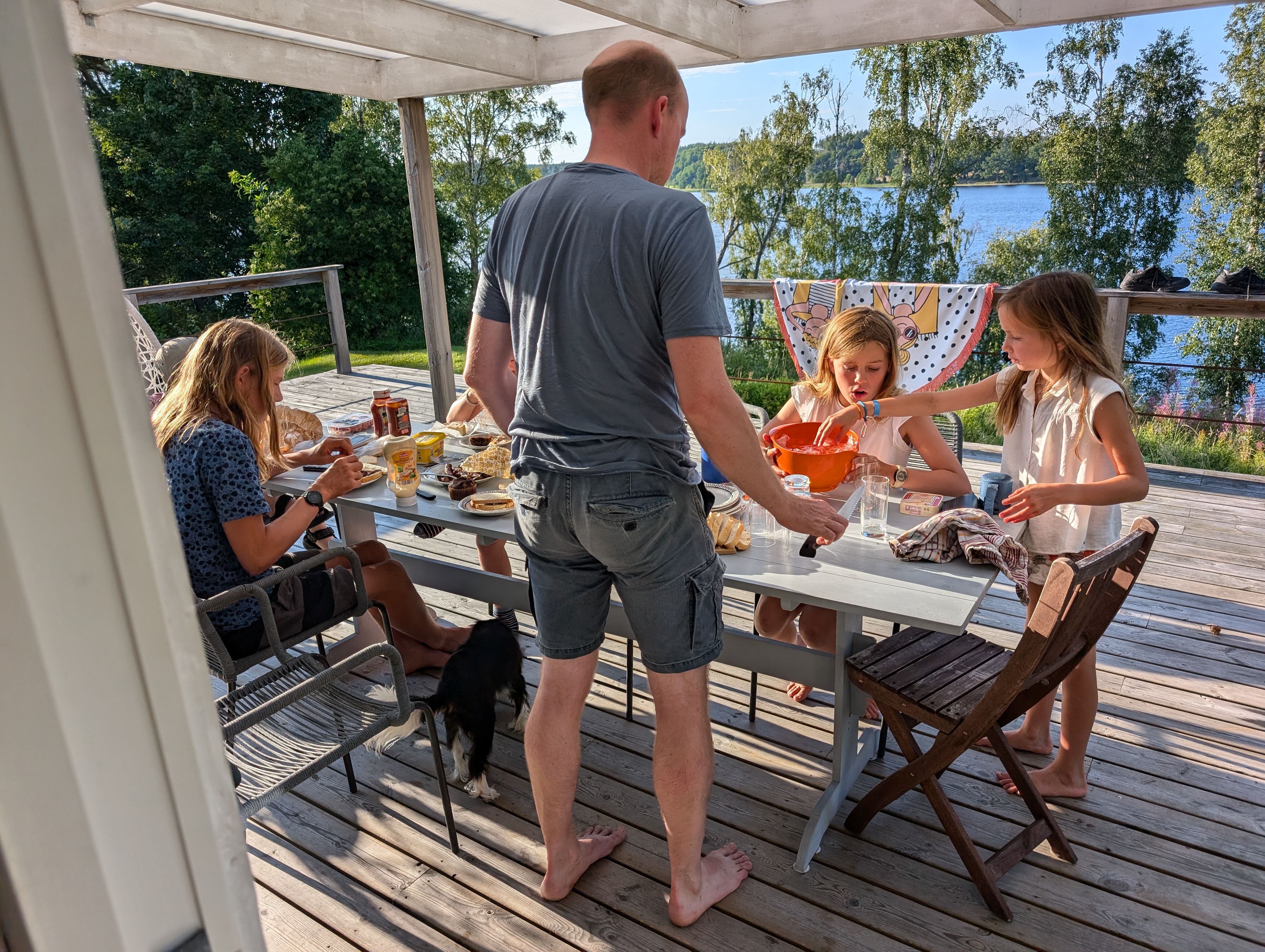 Het huisje in Zweden is super goed uitgerust. Als ik het trekkertje in de douche zie hangen en de zeer nette slaapkamers in het oog krijg, zie ik even rampscenario’s van schadeclaims via Airbnb – wegens te hard geleefd – voor mijn geestesoog verschijnen. En had ik eigenlijk wel meegedeeld dat we een hond bij hadden?