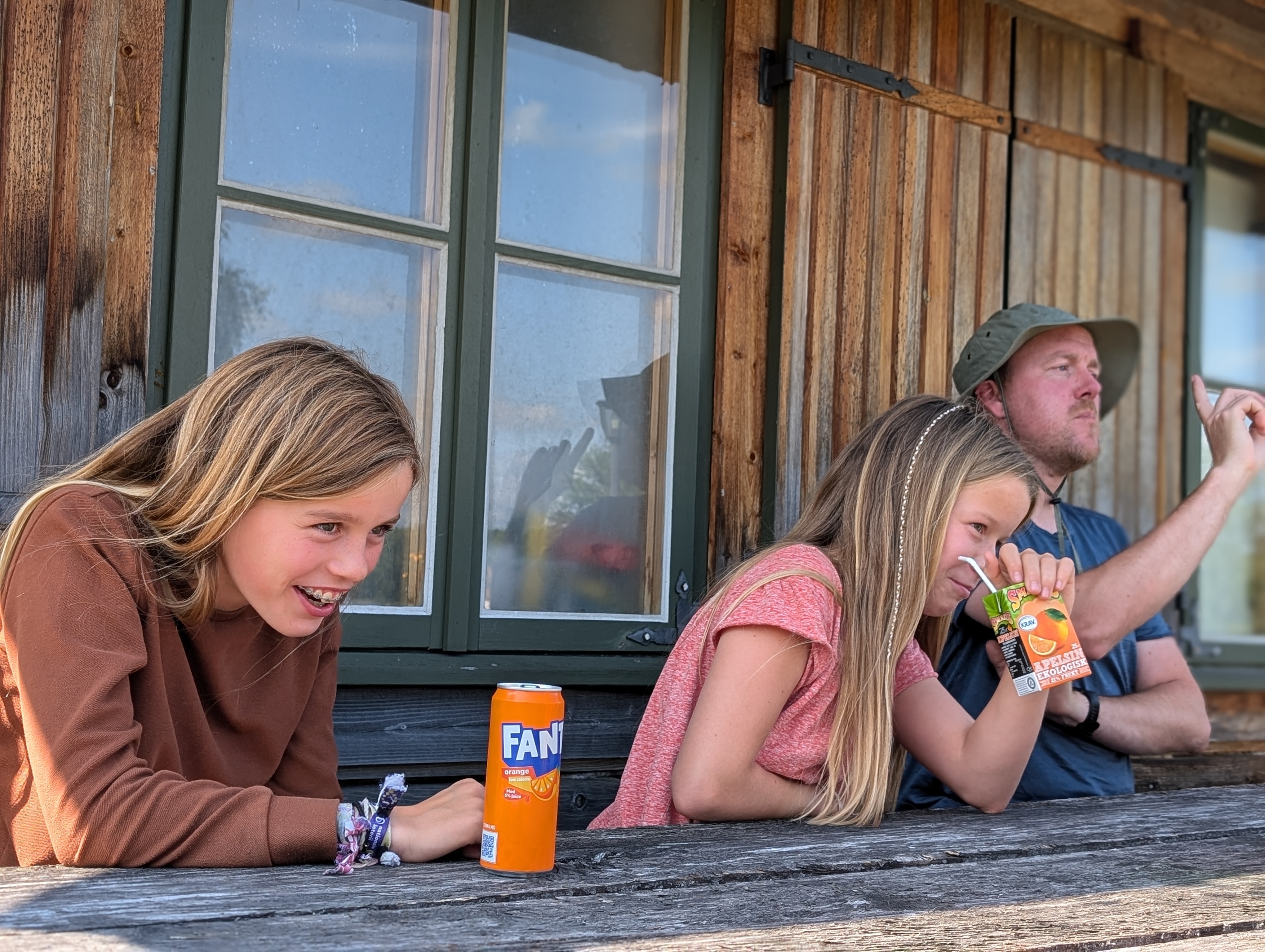 Ik verbaasde me over het uithoudingsvermogen en de souplesse van manlief en de kinders en verwarmde me aan de aanmoedigingen van kleine zus en het kleinste sprotje en aan de mopjes van de rest van de troep. Nooit zoveel liefde gesmaakt als in de voor mij achtergelaten energybar op een grote steen midden op een pad in het midden van niets.