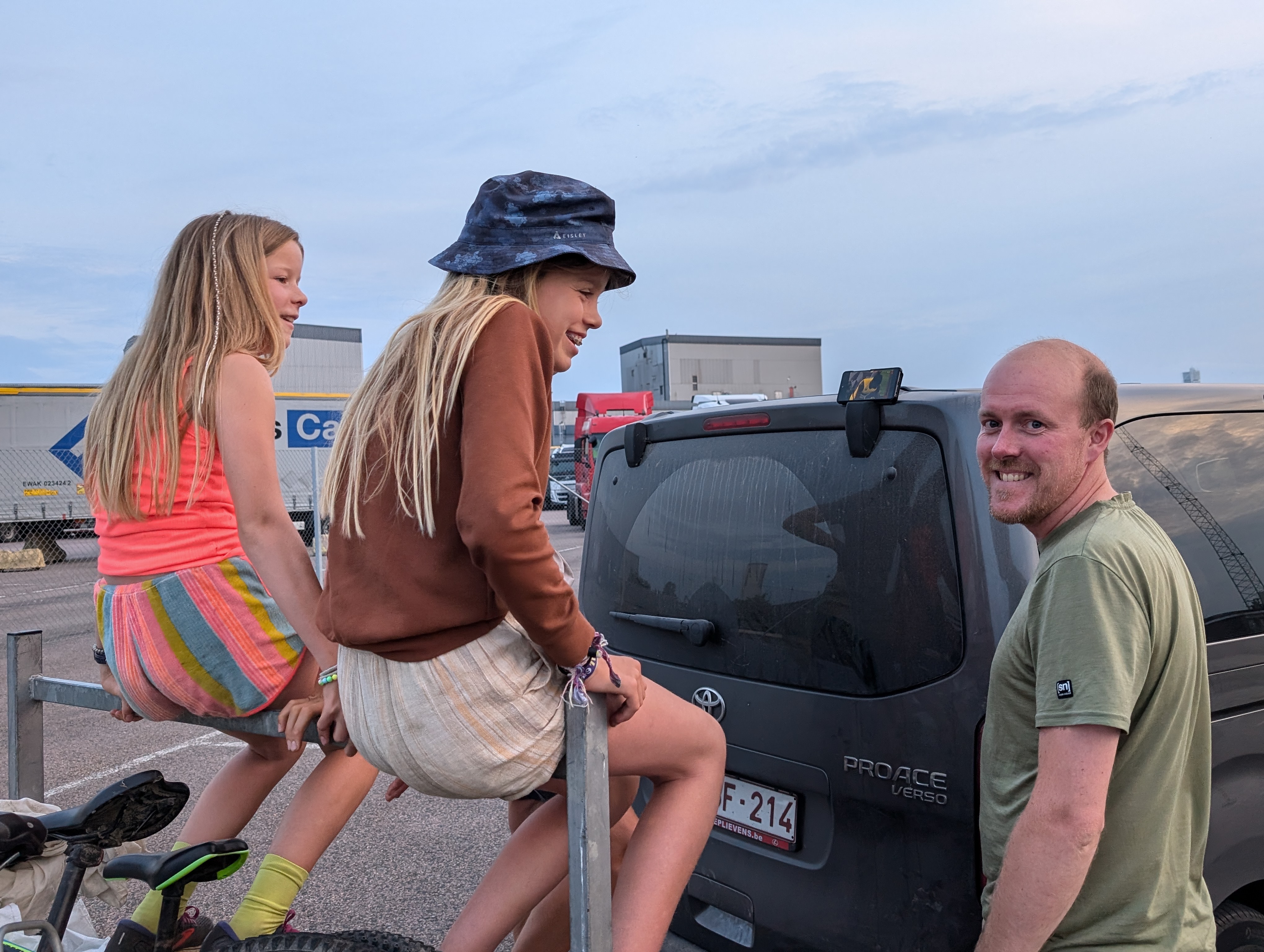 Op zulke momenten ben ik eigenlijk enkel ‘autovulling’ en probeer ik zo weinig mogelijk te zeggen. Ik ben ervan overtuigd dat we de weg niet zullen vinden op de haven, dat de hond niet zal mee mogen of zoek zal raken, dat ik de paspoorten van de kinderen kwijt zal zijn of erger nog dat we schipbreuk zullen leiden. En ik voel niets dan bewondering voor manlief die kalm in de rij staat, kleine broer tot een extra uitlaatbeurt voor Ollie weet te overhalen, sust en blust en geduldig vragen beantwoordt.