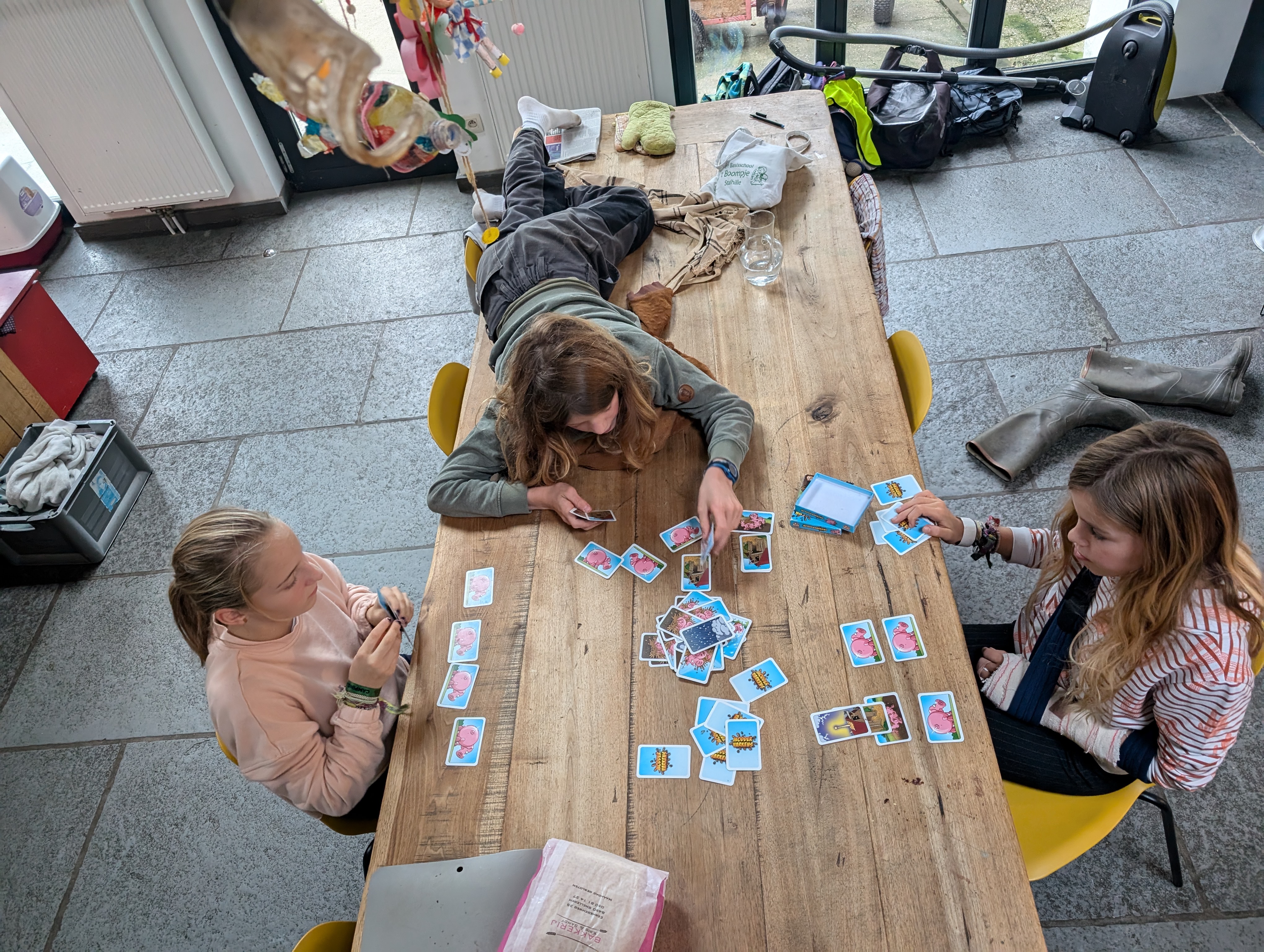 Er is heel soms een heel klein beetje tijd over. Tijd om te zitten, te hangen, te praten. Hoe die tijd ingevuld moet worden, vind ik soms moeilijk. Ik zie de kroost niet graag op een kluitje, scrollend, in de zetel. Elk in zijn of haar eigen wereldje, maar ik wil ook niet per se dat elk moment dat over is collectief beleefd wordt.