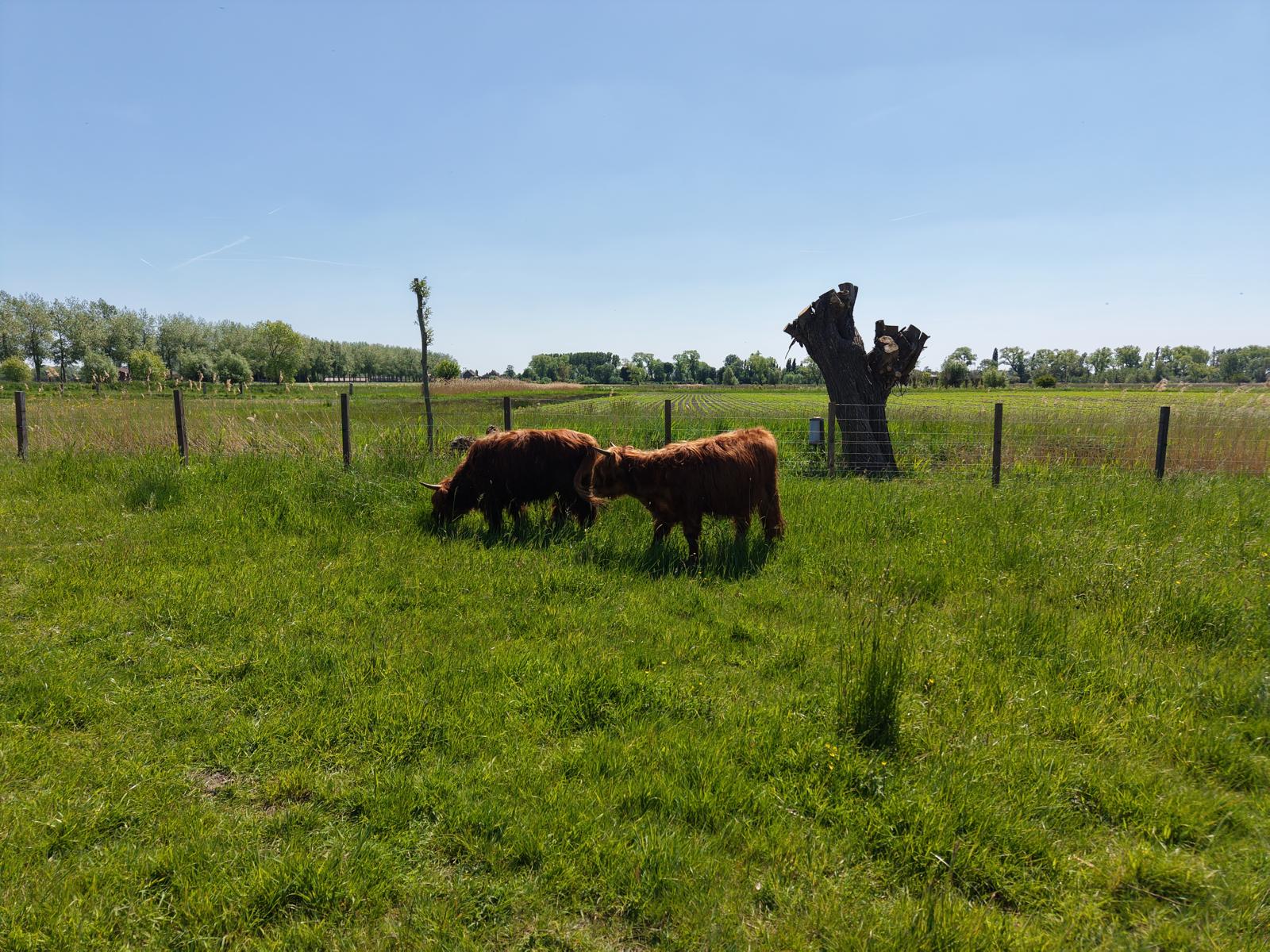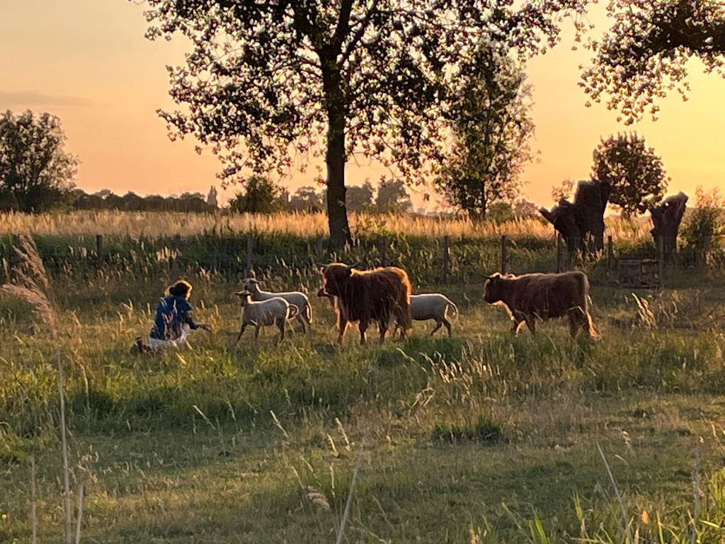 Een lang gekoesterde droom om ruimte te hebben om dieren te houden werd dit jaar werkelijkheid. Op het veld dat grenst aan onze tuin wonen sinds kort 4 schapen en 2 koeien.