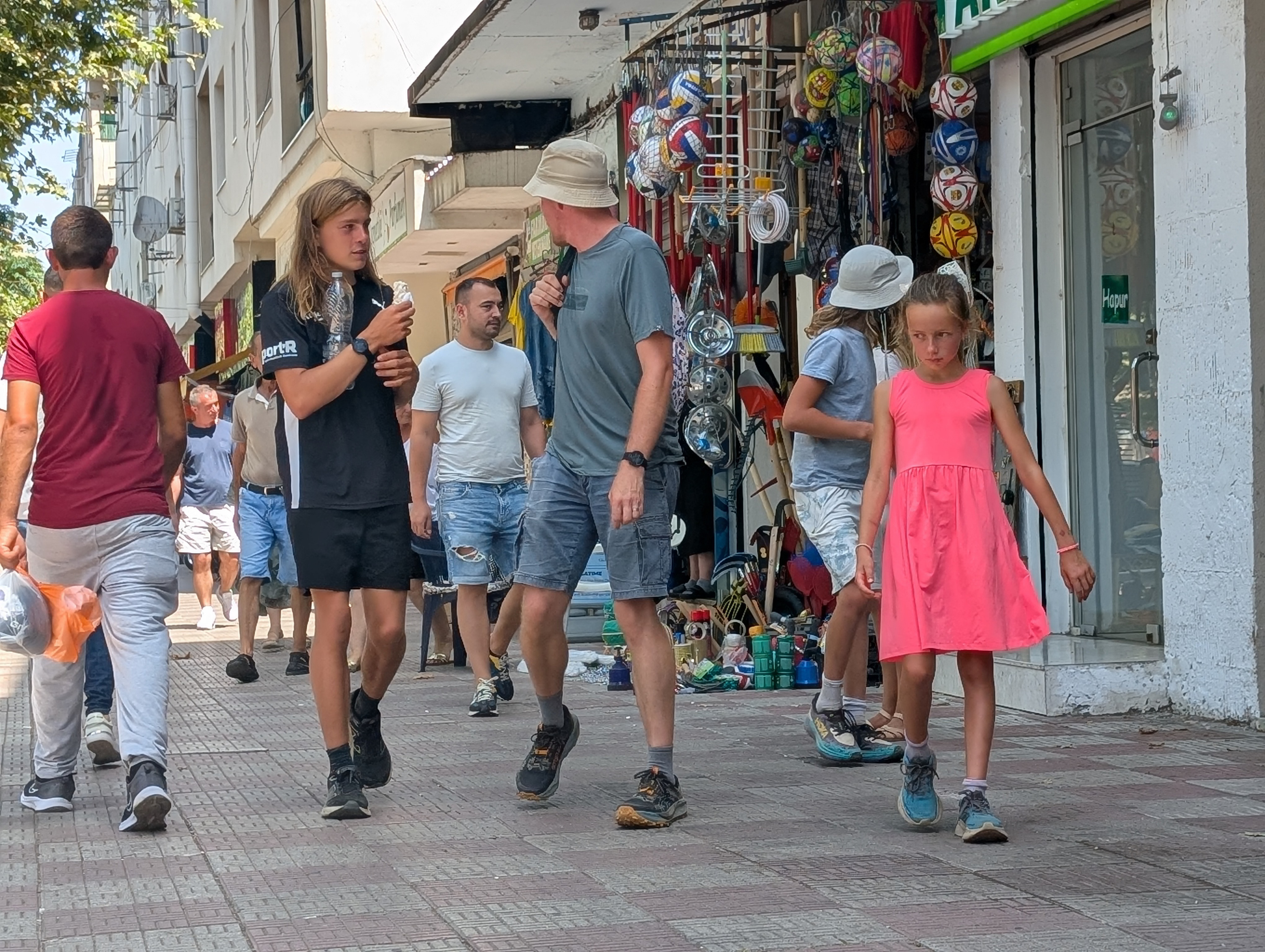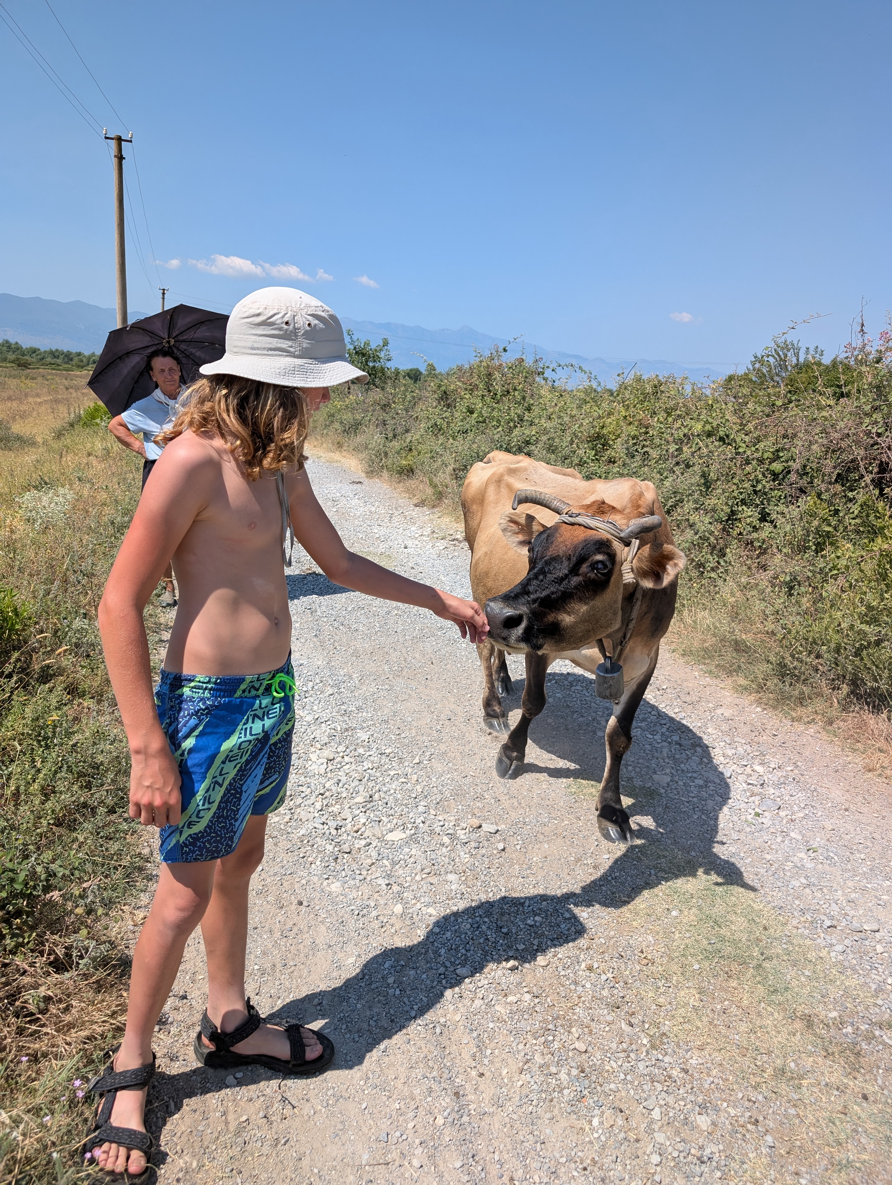 We gingen er de eerste dag te voet op uit, verbaasden ons over de enorme hoeveelheden zwerfvuil (van schoenen van Primark tot zetels en lege blikjes) en zagen her en der koeien, geiten en schapen en herders passeren. Dit alles onder een loden hitte. Ik deed zelf een poging tot looptraining, maar hield het na anderhalve kilometer voor bekeken wegens te warm.