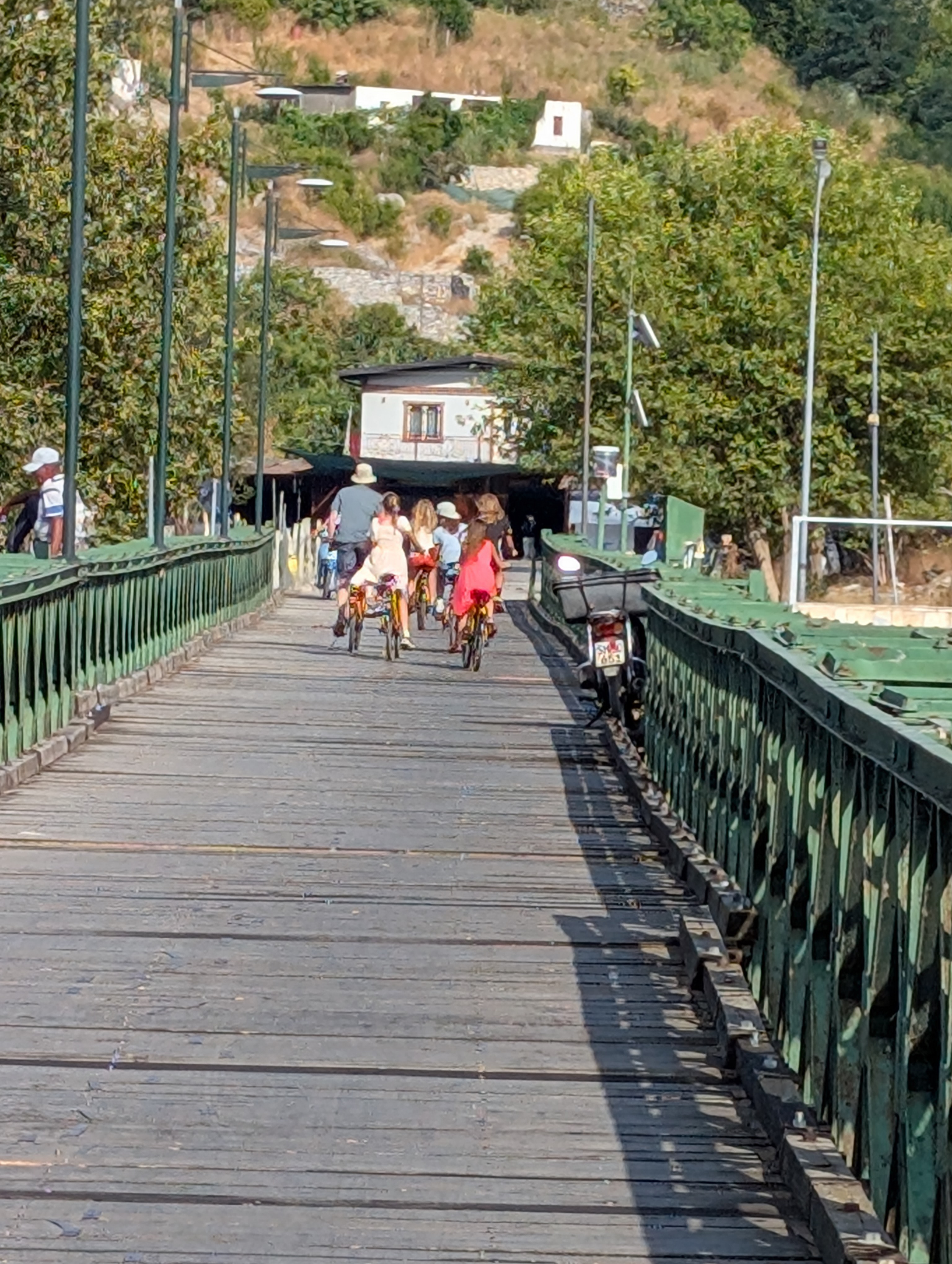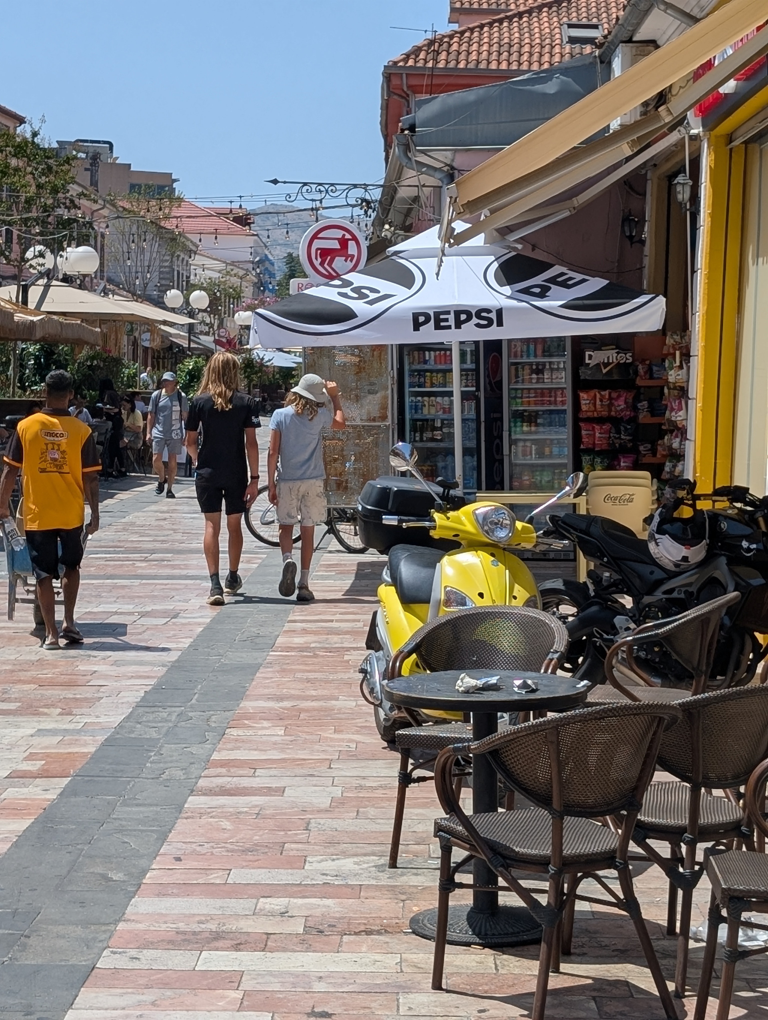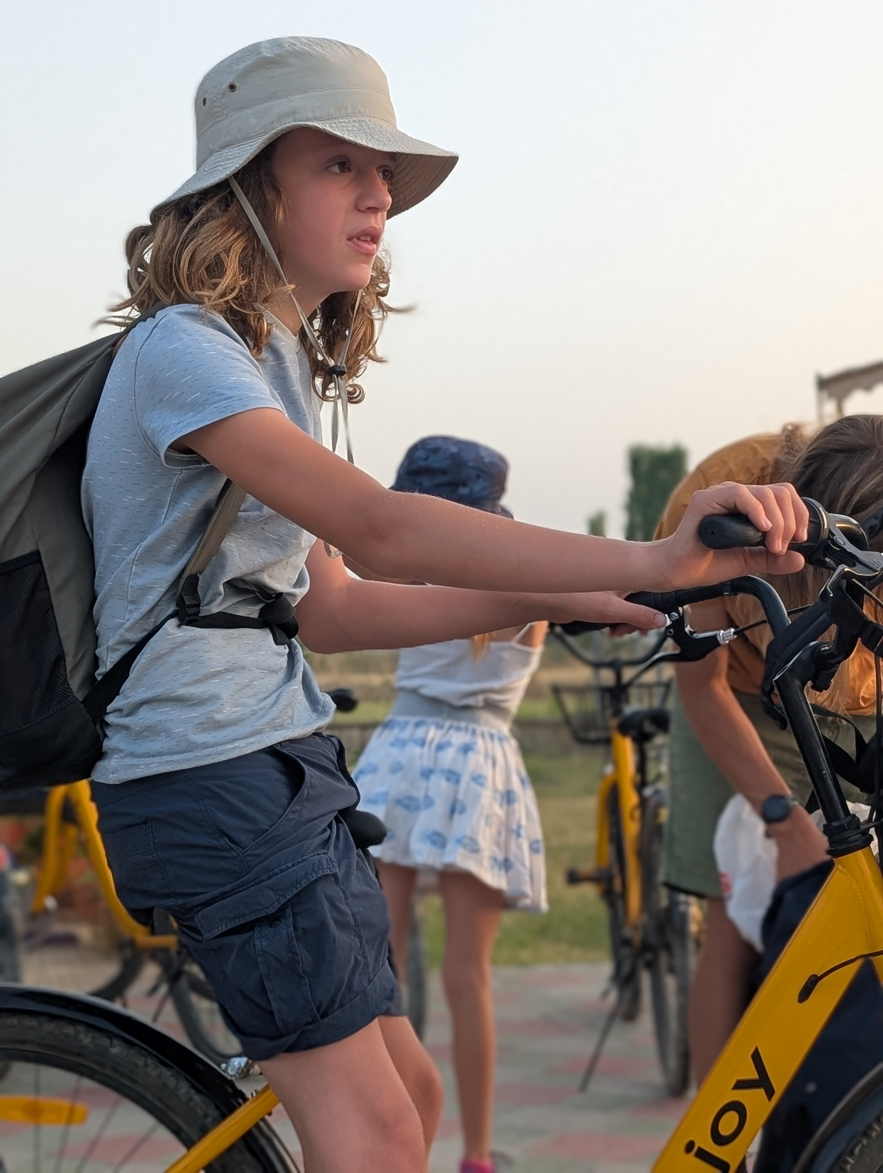 Grote broer had wel trainingen af te werken en bleek ook op vlak van bestand zijn tegen de hitte straffer dan zijn moeder. Hij liep de 10 kilometer naar Skhodër. Manlief dacht voor de rest van de troep een taxi te hebben gefixt, die werd geannuleerd waardoor we ook te voet moesten. We huurden uiteindelijk fietsen via Joy, fietsten naar het nabijgelegen Shirokë en gebruikten ons gele stalen rosjes meteen ook om de volgende dag naar het busje richting startpunt van onze trektocht te fietsen. Dit alles voor 5 euro per fiets.