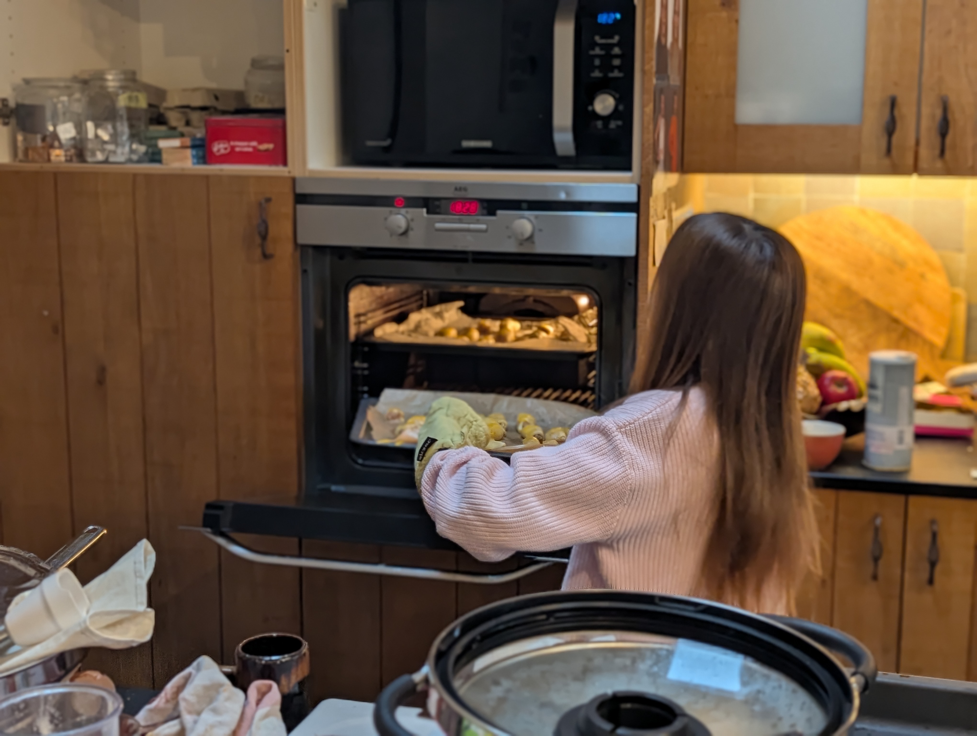 Mental note: zorg dat de ingrediënten in huis zijn en zorg dat je je er niet te veel in opjaagt dat kinders nu eenmaal rommel maken. De intentie om te bakken en al die dappere of halfslachtige pogingen om op te ruimen zijn toch ook best ok, niet?
