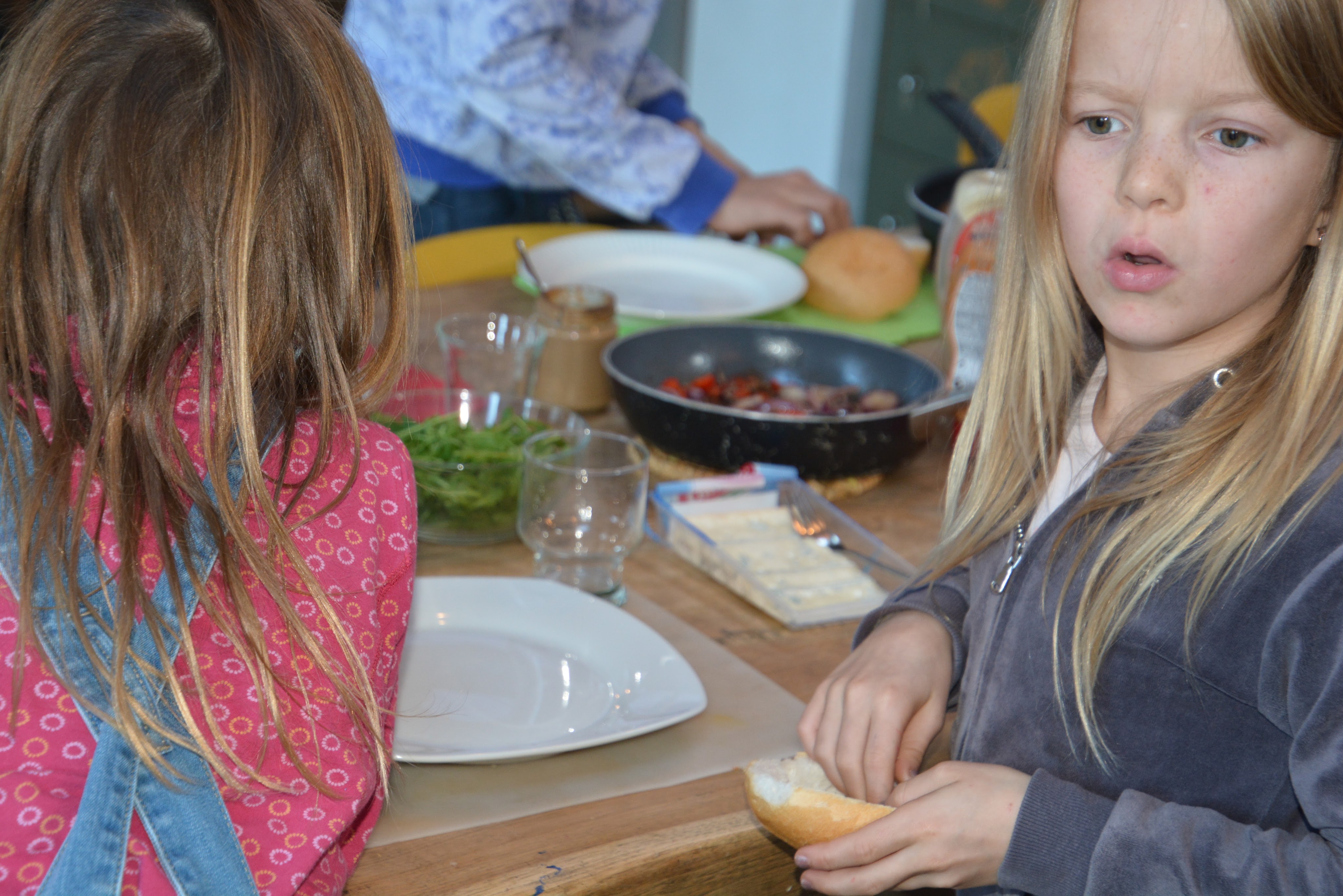 Zorg voor gemakkelijk eten. Ik ging vorige week voor huisgemaakte lasagne. Aan één opscheplepel, een ovenschaal, 7 vorken en 7 borden heb je genoeg. Eten mag al eens met alleen maar een vork en drinken doen we binnen. Scheelt een aantal ritjes kippenren – vaatwasmachine.