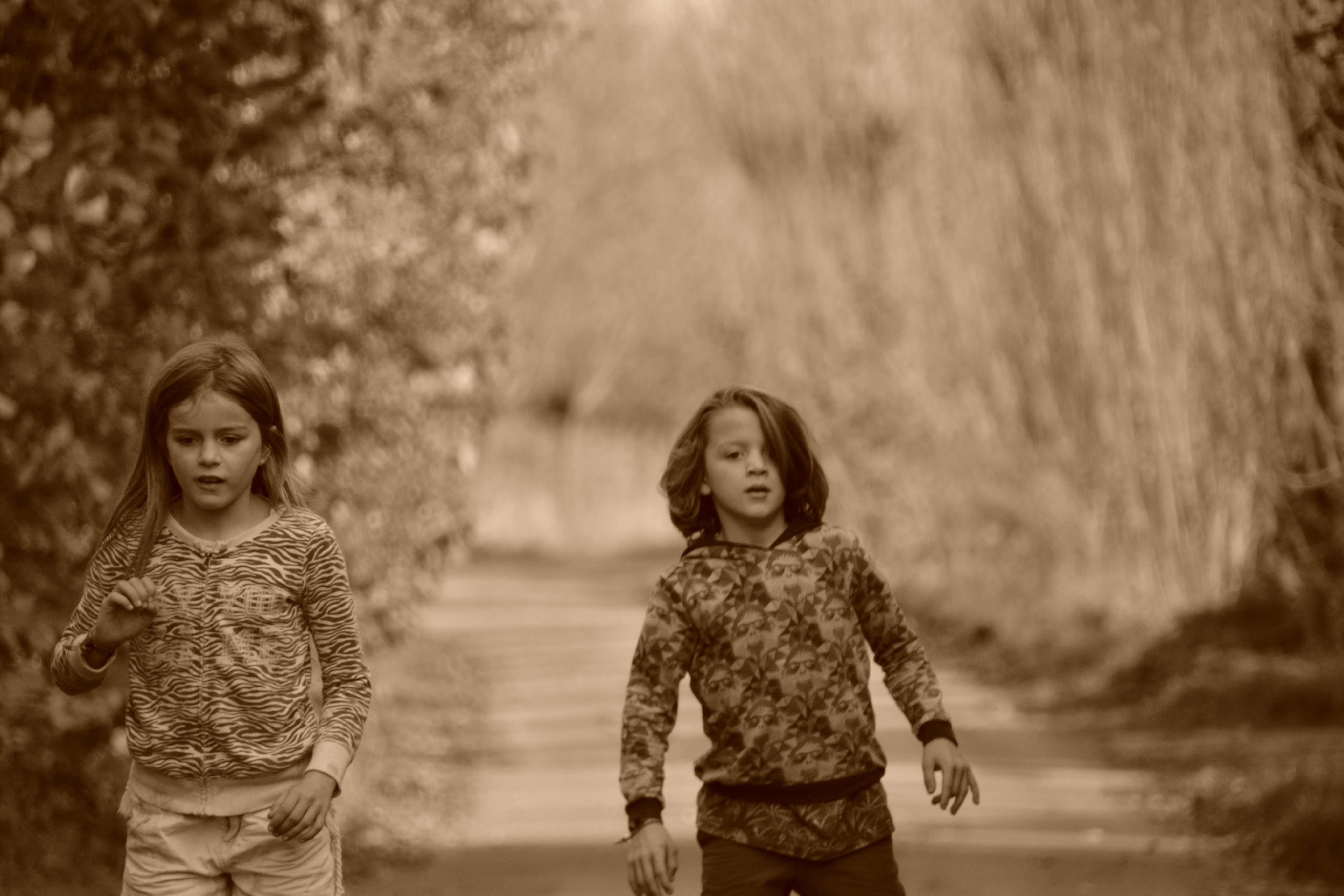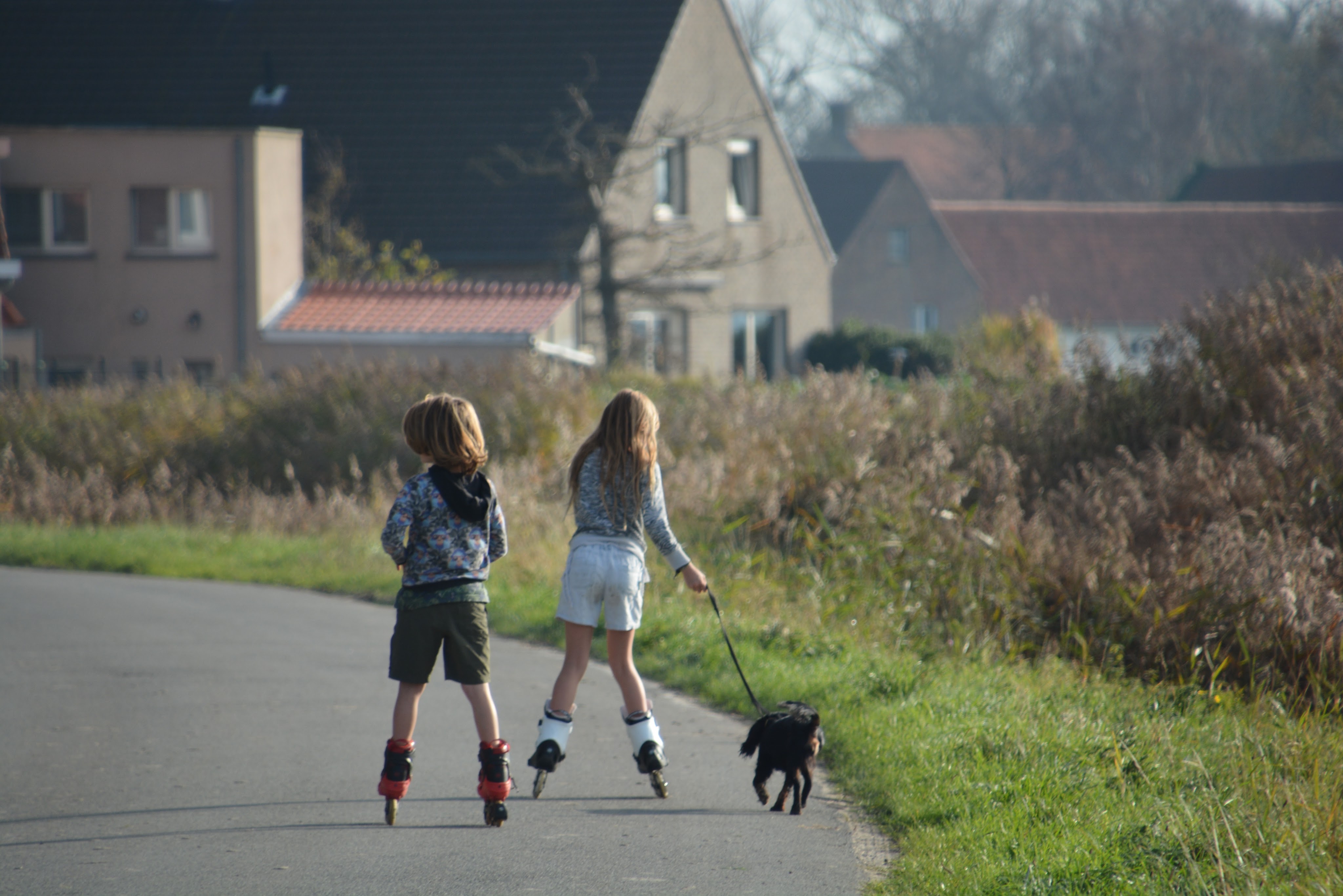 Als moeder gaat joggen en rechtdoor loopt aan de brug over de vaart mag de meefietsende kroost links afslaan een stukje alleen fietsen of rolschaatsfietsen. Ik zie met snaakjes anderhalve kilometer verderop onder ‘de tunnel’ terug. (Een doorsteekje voor de bewoners van het ene huis langs de vaart en voor de vissers.)