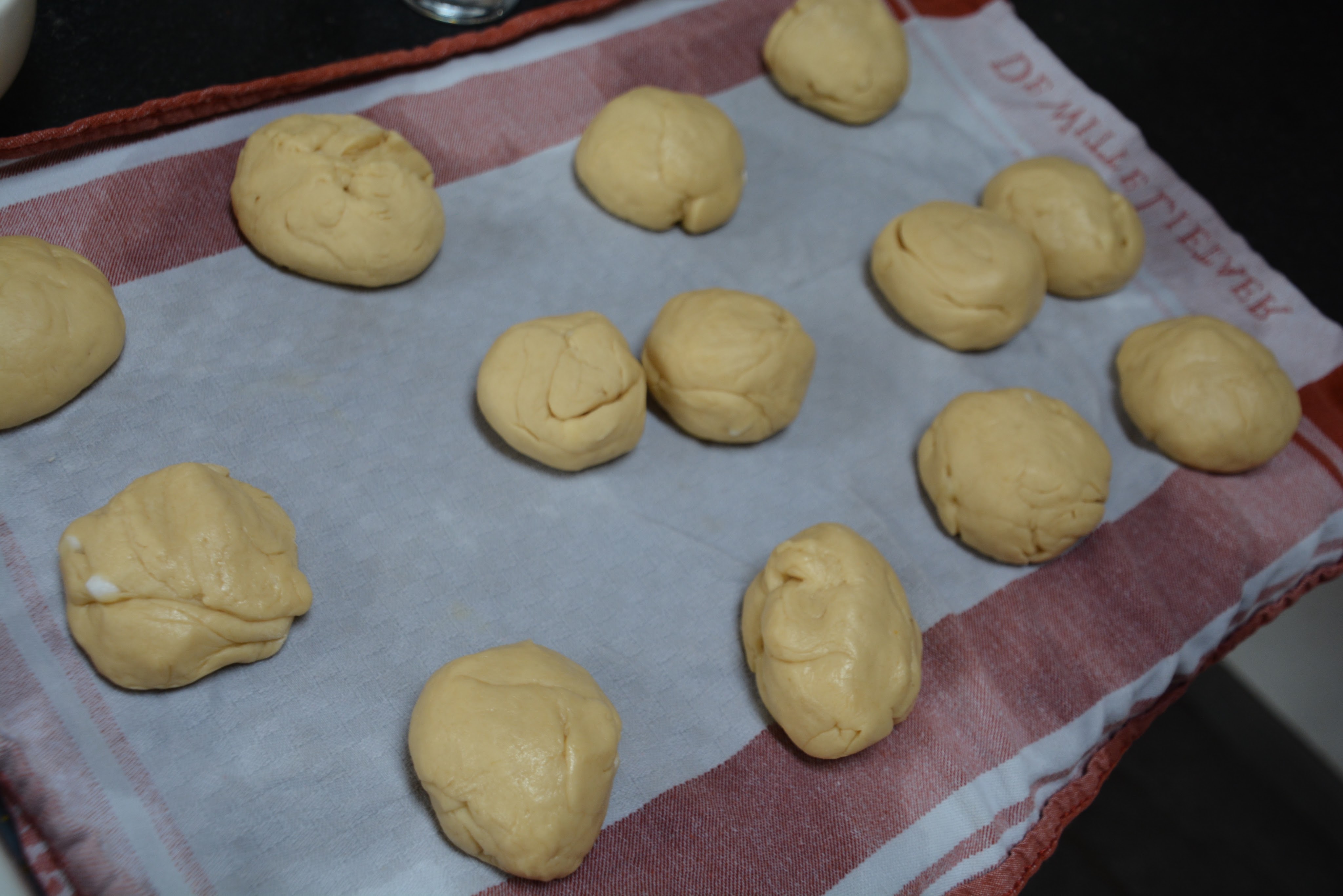 Mogen we vanmiddag iets lekkers als viertuurtje? Zet het wafelijzer maar klaar jongens. Ik maak een portie deeg, jullie verdelen het in 14 bolletjes, voegen suikerpareltjes toe en bakken de wafels.