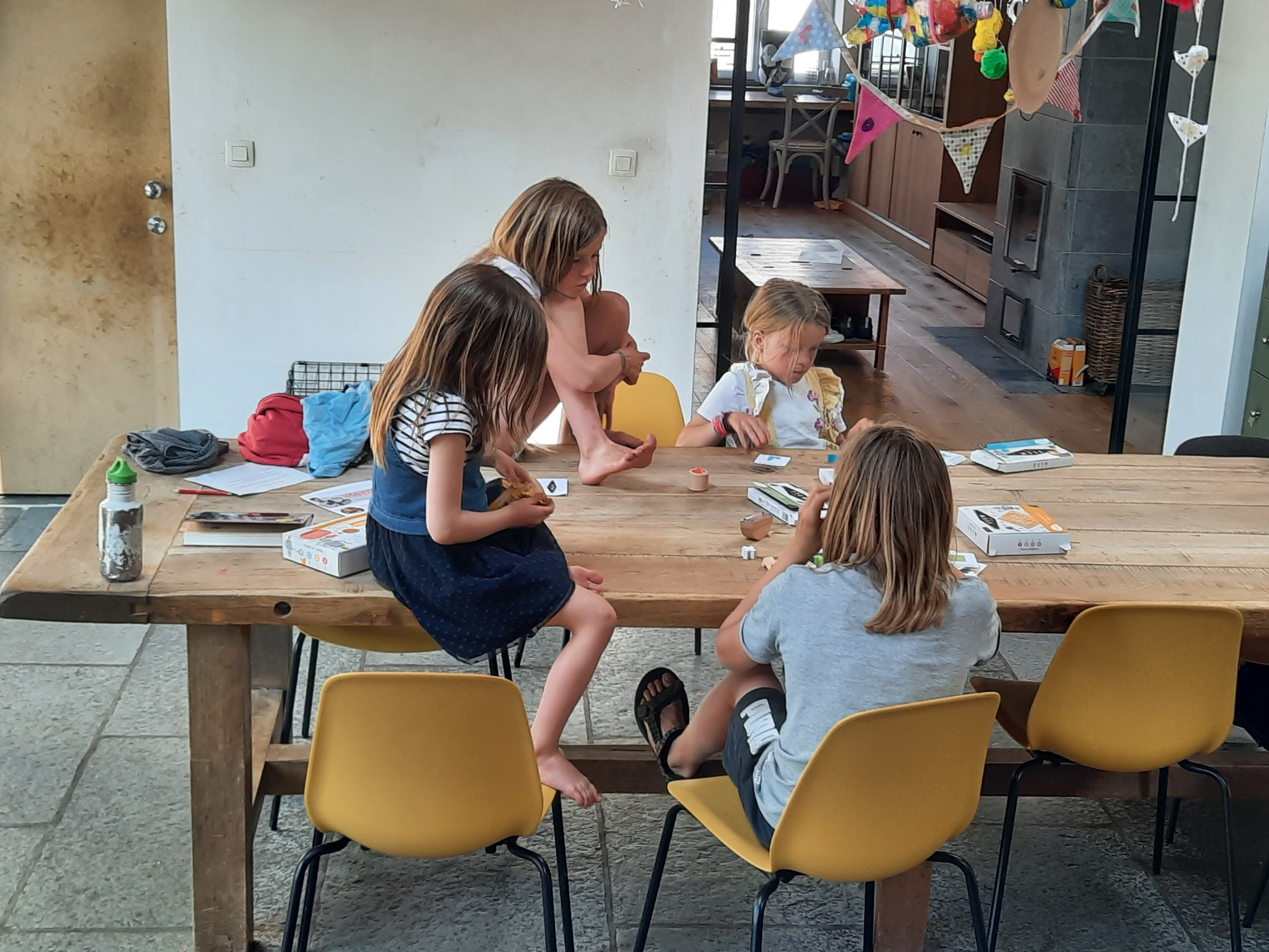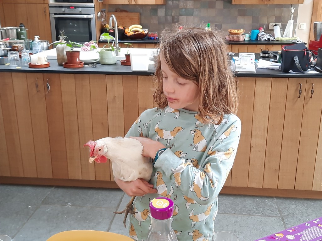 De kroost doet het goed en scharrelt goddank nog steeds heel erg graag dichtbij rond. Kampen van scouts en Kazou worden ten volle beleefd – op dit eigenste moment is er nog een vanuit Zweden onderweg naar huis – maar dagen thuis, daar houden ze eigenlijk ook wel van. Het is een va-et-vient van nichtjes en buurkinderen. Heerlijk om te zien hoe een 13- of een 15- jarige de 3-jarige buurjongen op sleeptouw neemt, hoe de kleine nichtjes met gemak over de schouders van de oudste neven worden gegooid en hoe ook heel wat andere kinderen zich bij ons helemaal thuis voelen.