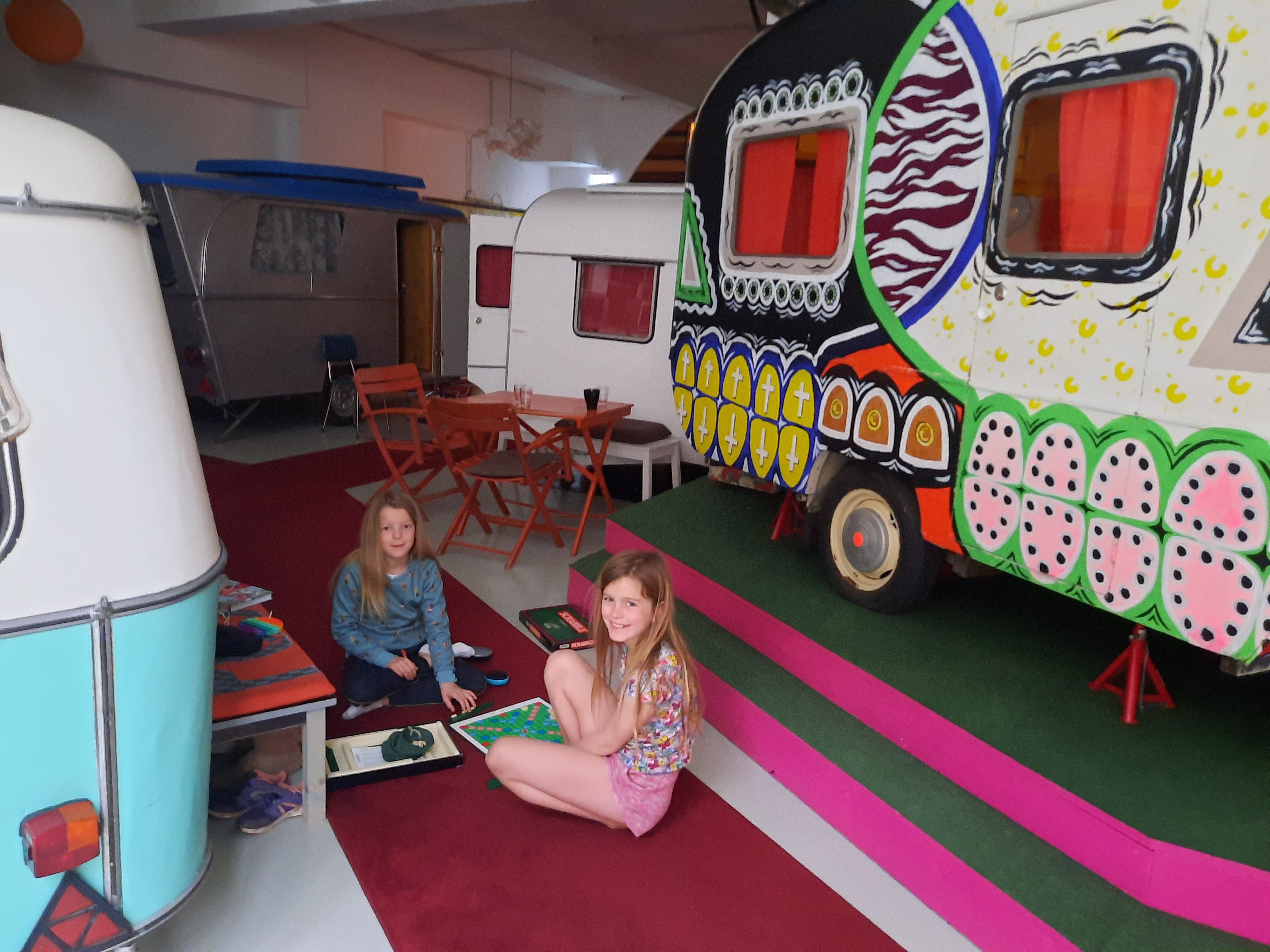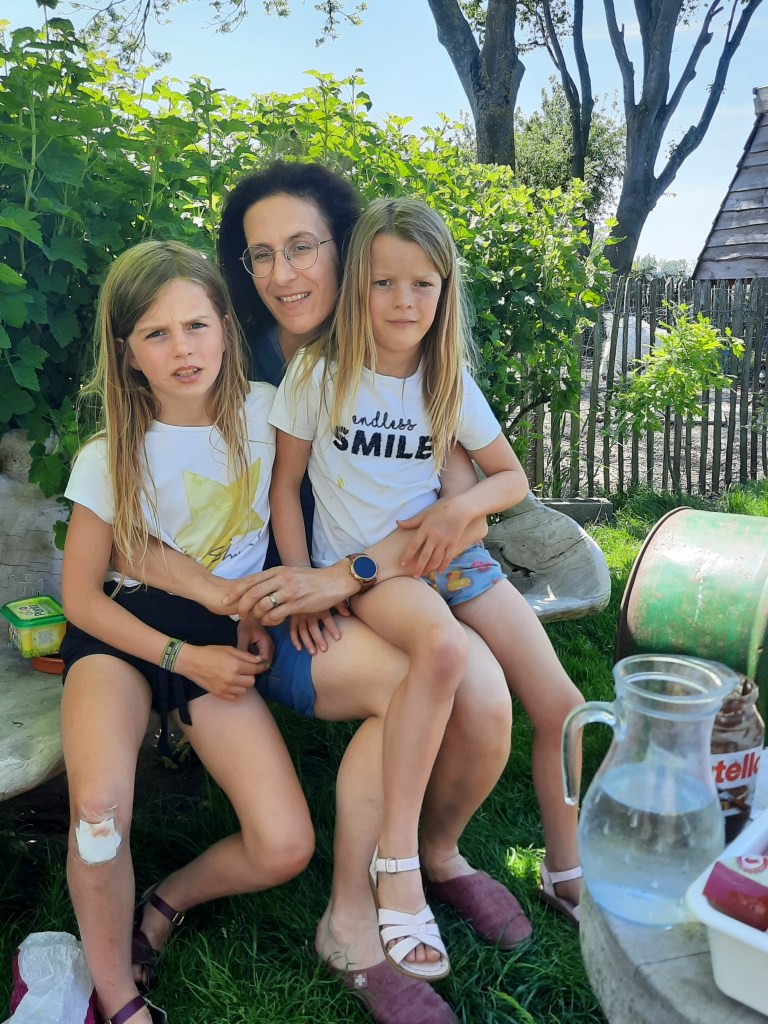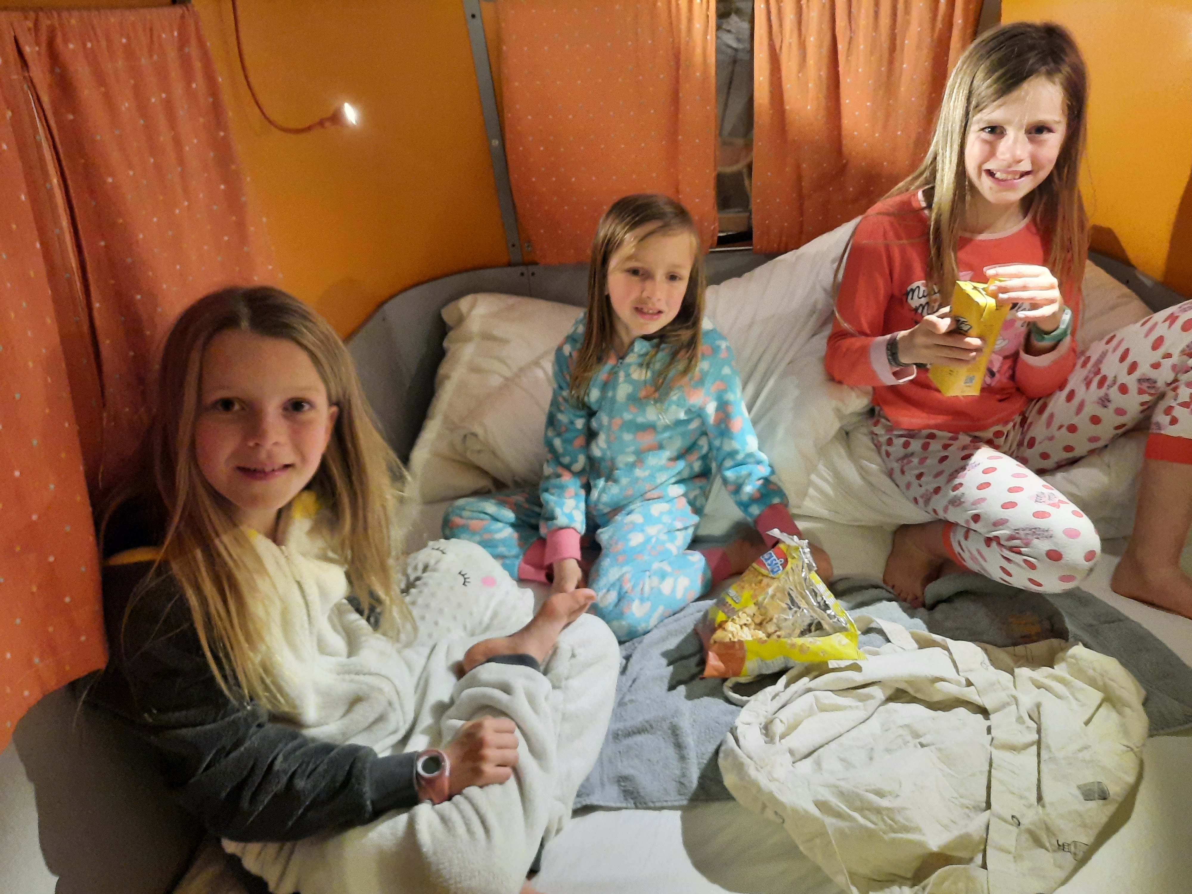 Ik vond het heerlijk om te zien hoe de meisjes de treinrit heen en terug uit hebben gezeten door te lezen, te schrijven en heen en weer te lopen in de trein zonder een enkele keer te zeuren om schermtijd. (Die was er niet, dat wisten ze op voorhand.) Grote zus en kleine zus schelen maar een dik jaar in leeftijd en kunnen dus min of meer hetzelfde aan, zowel wat dingen verstaan als wat fysieke fitheid betreft (grote zus kan meer, maar is fijngevoelig genoeg om haar tempo aan te passen.) Het kleinste sprotje wentelde zich af en toen in haar rol van ‘kakkenestje’ en kreeg het voor elkaar dat ze elke nacht bij mij in de caravan mocht slapen terwijl we eerst hadden afgesproken om te wisselen, maar ook dat verliep zonder grote problemen.