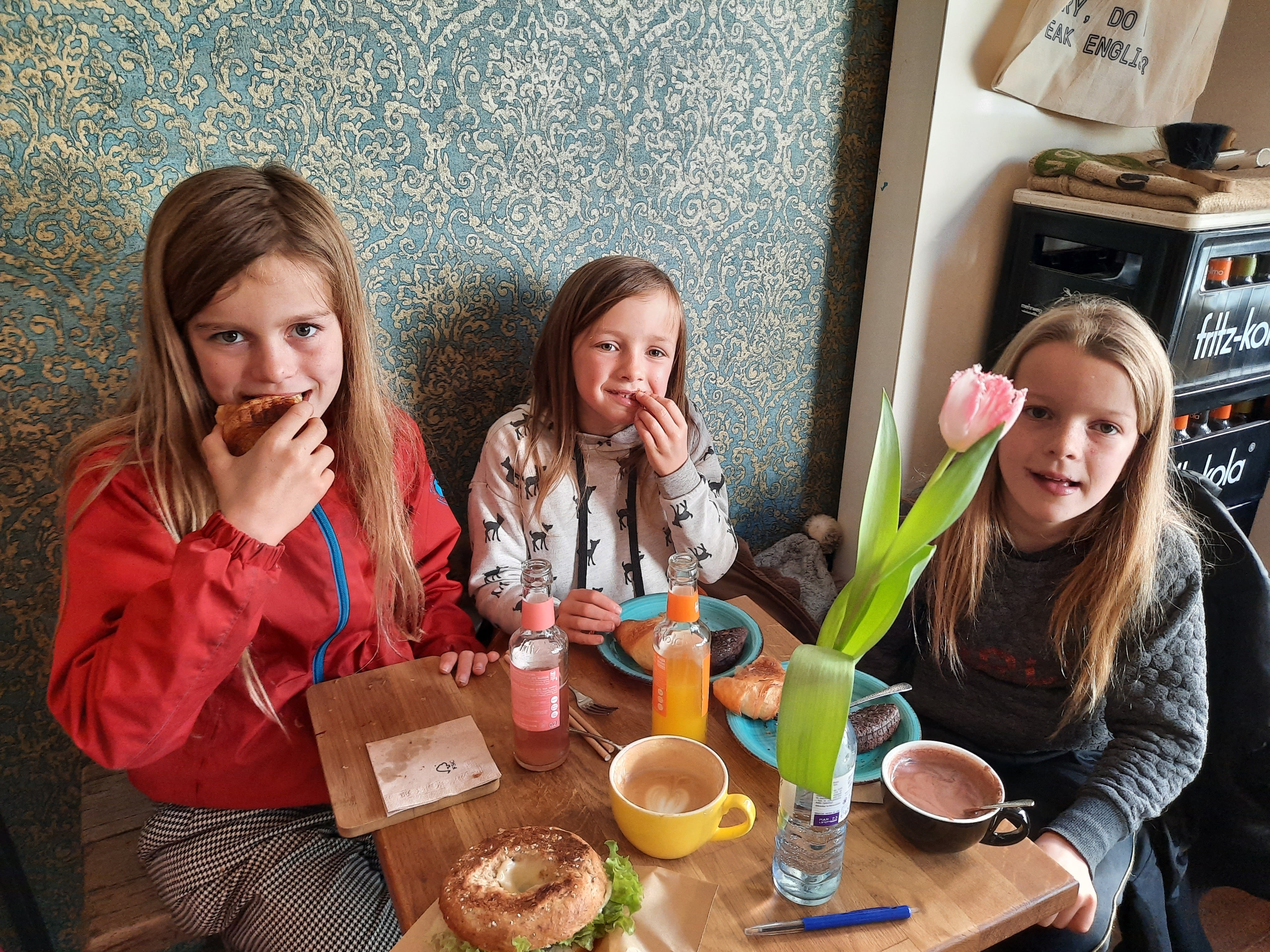 Koffiebar Coffee Lab . Wat een heerlijk plekje was dit. Piepklein, maar erg lekker en met 100 % vakmanschap gemaakt. We hadden hier een heerlijk ontbijt met koffie voor mij, sapjes voor de meisjes en heel lekkere bagels en croissant met ham en kaas. Ook Anna Blume was een fijn ontbijtplekje.
